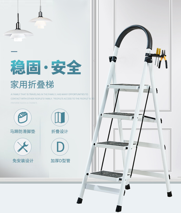 这款 声雨竹 家用可折叠多功能 2-6步梯,加厚D型管材质,橡胶防滑双拉条固定踏板,耐用稳固安全,高回弹海绵扶手,柔软耐磨,安全耐用,可折叠收纳,节约空间。领券链接点此