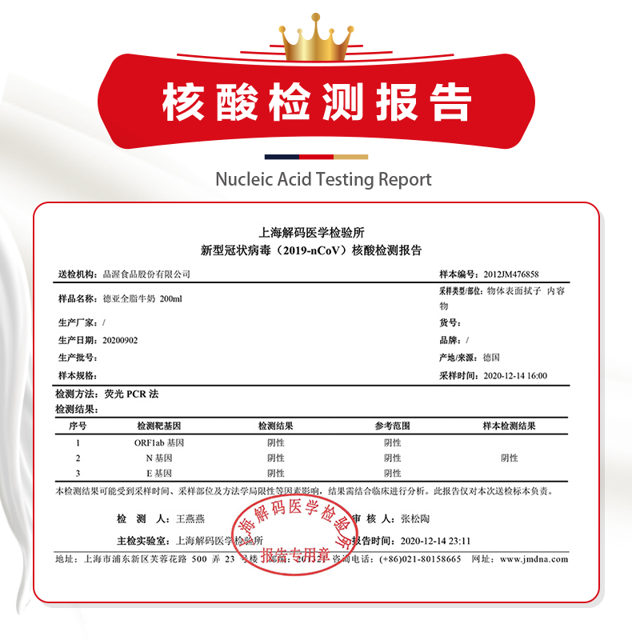 Weidendorf德亚是品利公司的自有品牌,是一家正规的进口食品进口商和经销商,其奶源采自澳大利亚和德国两地。德亚牛奶由德国知名奶产品厂商Hochwald 好沃德代工生产,商品拥有国家颁发的“出入境检验检疫卫生证书”和“中国人民共和国进口货物报关单”。