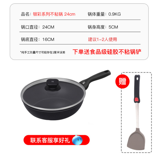 这款福腾宝WMF 不粘锅,属于银彩系列,锅径24cm、深度5cm,锅体是五层涂层一体压铸成型,不含PFOA等有毒物质,分别是表面不粘层、HALO粒子层、银色岩表层、独有强化层、硬度加固层。