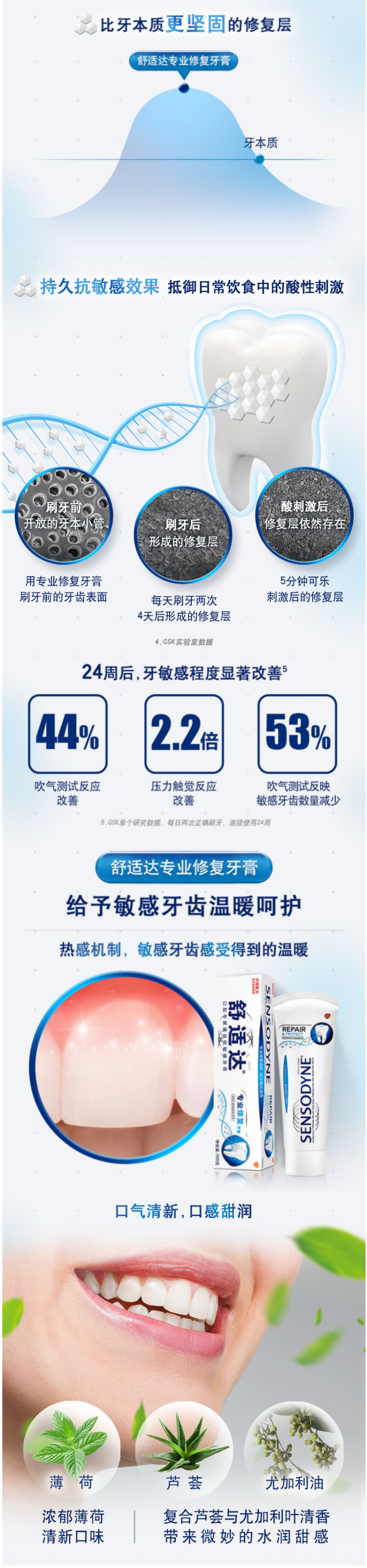 舒适达最贵最有效的抗敏感牙膏,专业修复款,突破性Novamin技术,修复牙本质小洞,从根本上解决牙齿敏感,适合牙齿敏感者日常使用。