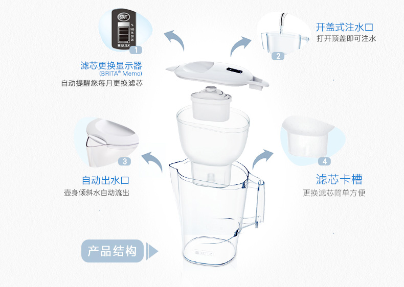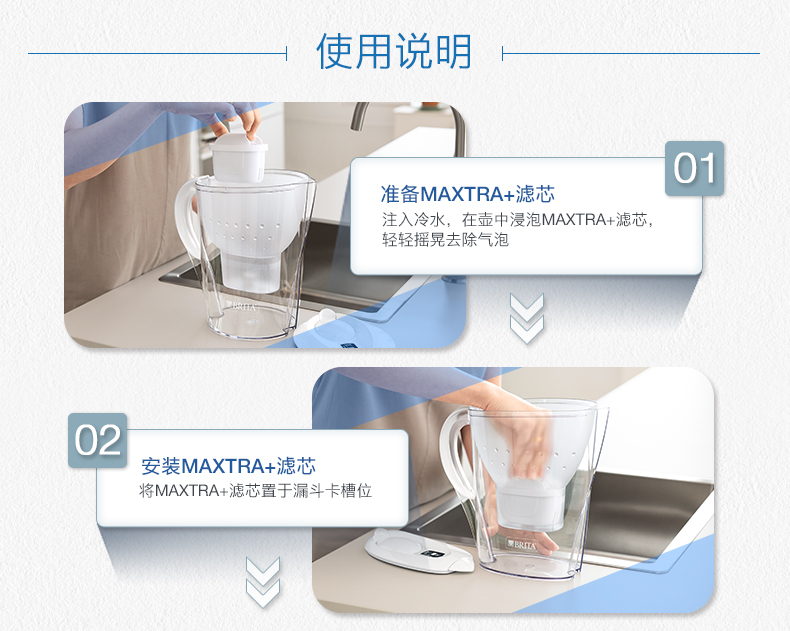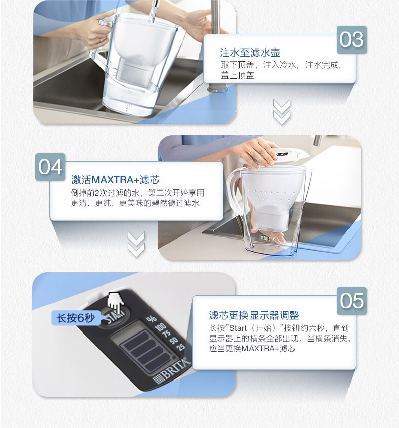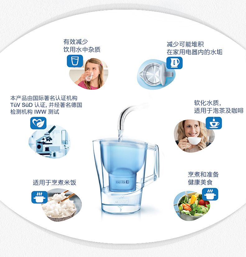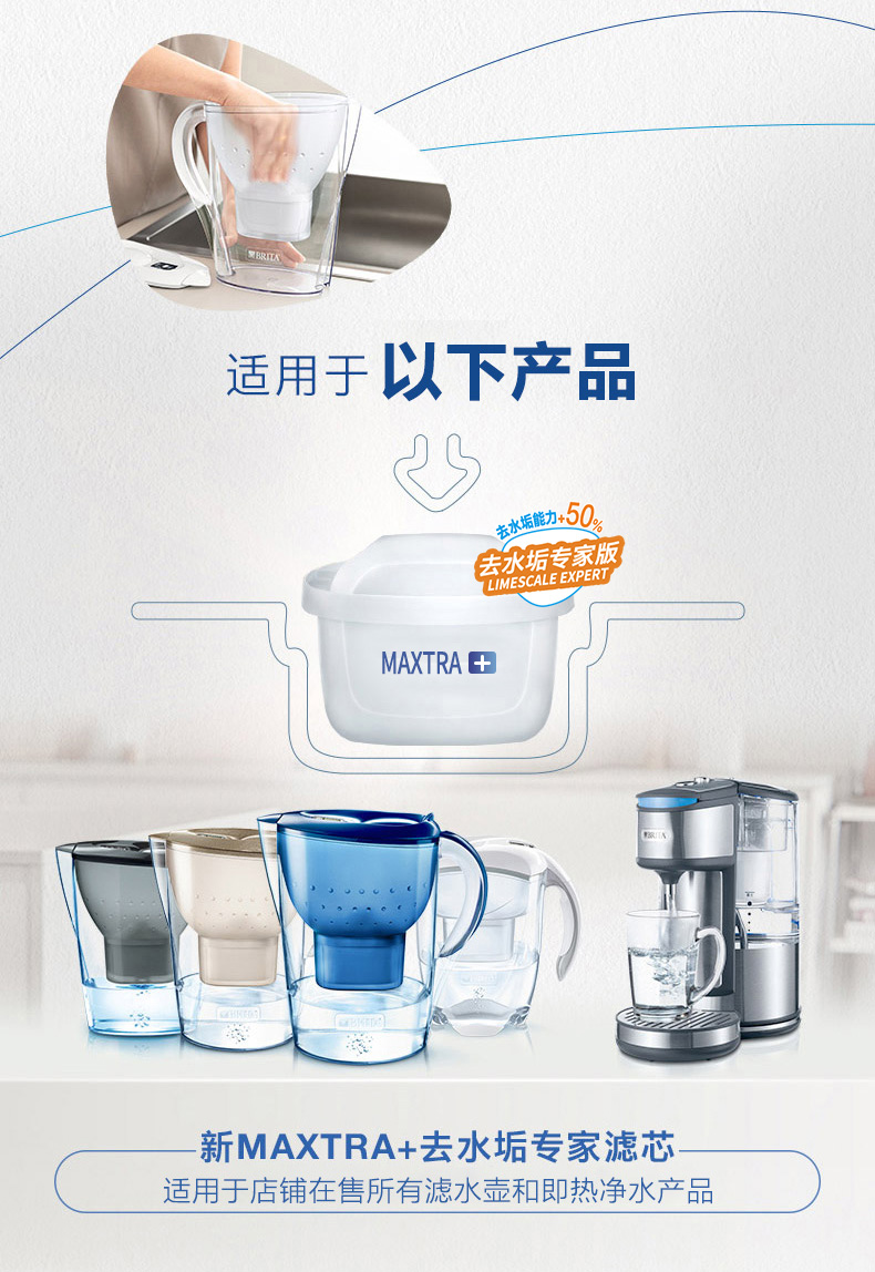 滤芯方面,德国原装进口的Maxtra+,比传统的一代滤芯在过滤能力方面增加了20%,还改良了MicroFlow Technology 微流控技术,使水的味道比以往更好。滤芯中所含的活性炭,能有效过滤水中的重金属、水碱、杀虫剂、有机杂质、氯气和异味。