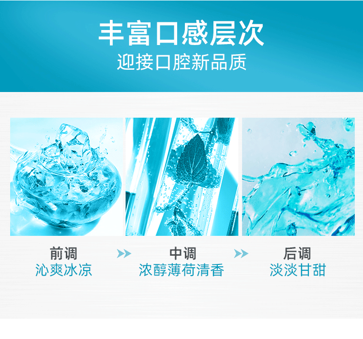 口感丰富,层次分明,前调沁凉冰爽、中调浓醇薄荷清香,后调淡淡甘甜。
