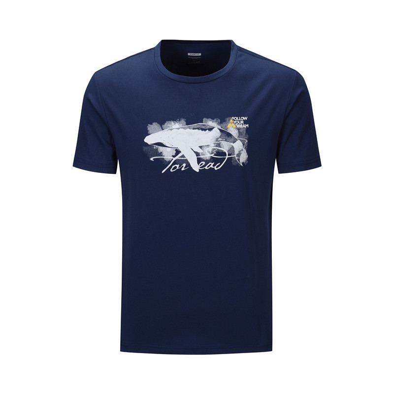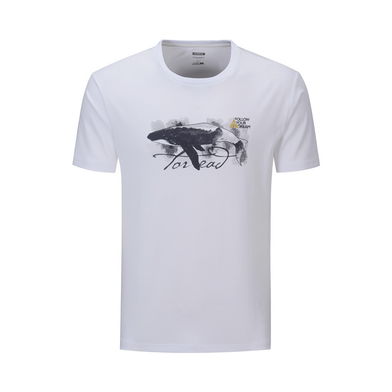 这款探路者男休闲印花T恤,使用100%纯棉面料,柔软亲肤、吸湿吸汗。合身版型,前胸是鲸鱼图案印花,增加趣味性,后领是Logo包边,舒适不摩后颈。