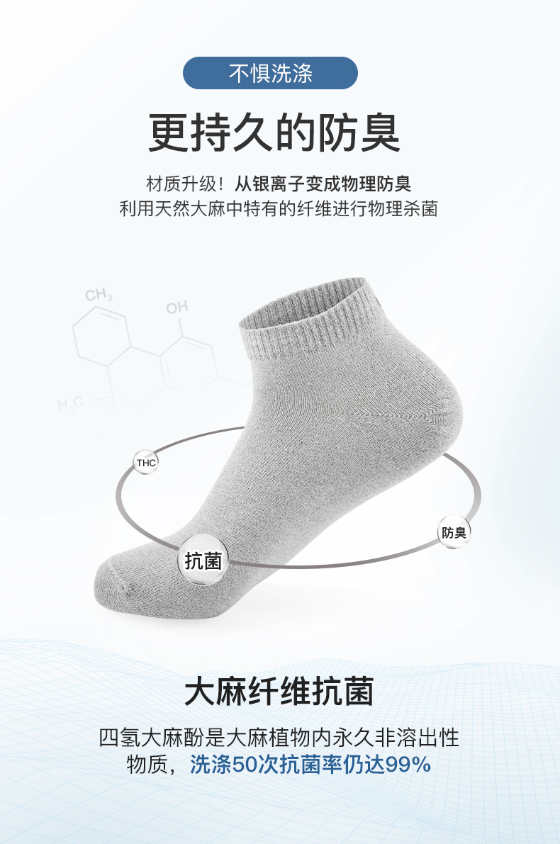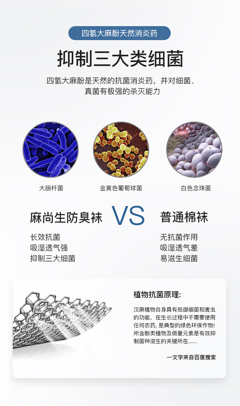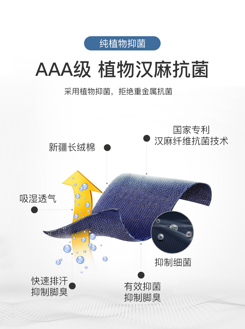 汉麻,又名线麻、寒麻、火麻等,别名称谓多达十余种。史书载,麻起源于中国,由它制成的服装衣饰具有吸湿、透气、舒爽、散热、防霉、抑菌、抗辐射、防紫外线、吸音等多种功能,既可军用又可民用。而以制成抗菌袜子的效果来说,就受到广泛好评。汉麻是人类最早用于织物的天然纤维,有“国纺源头,万年衣祖”美誉,