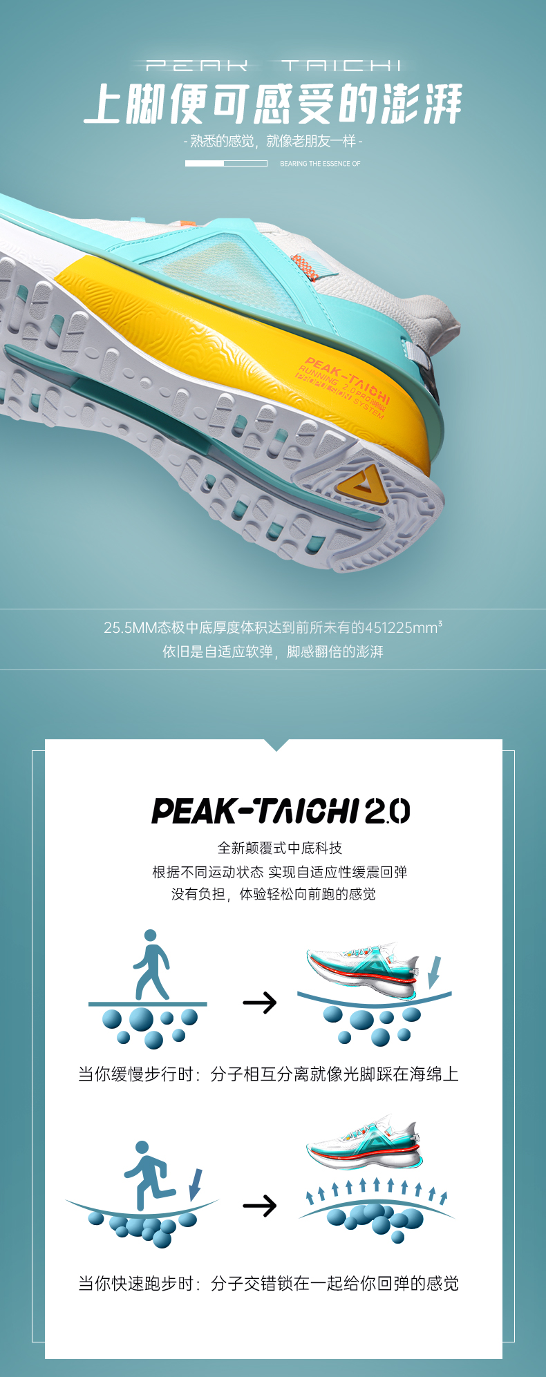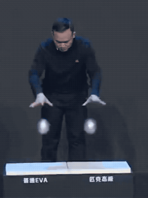 态极的核心就是中底,而中底是使用一种类似于非牛顿流体的物质发泡制成,能做到“遇硬则硬,遇软则软”的效果,在慢走状态下的柔软度微微次于加厚的记忆棉材质,在快速跑动中能获得比Boost颗粒更大的回弹感觉,在发布会上还上演了一幕“铅球变篮球”的好戏。