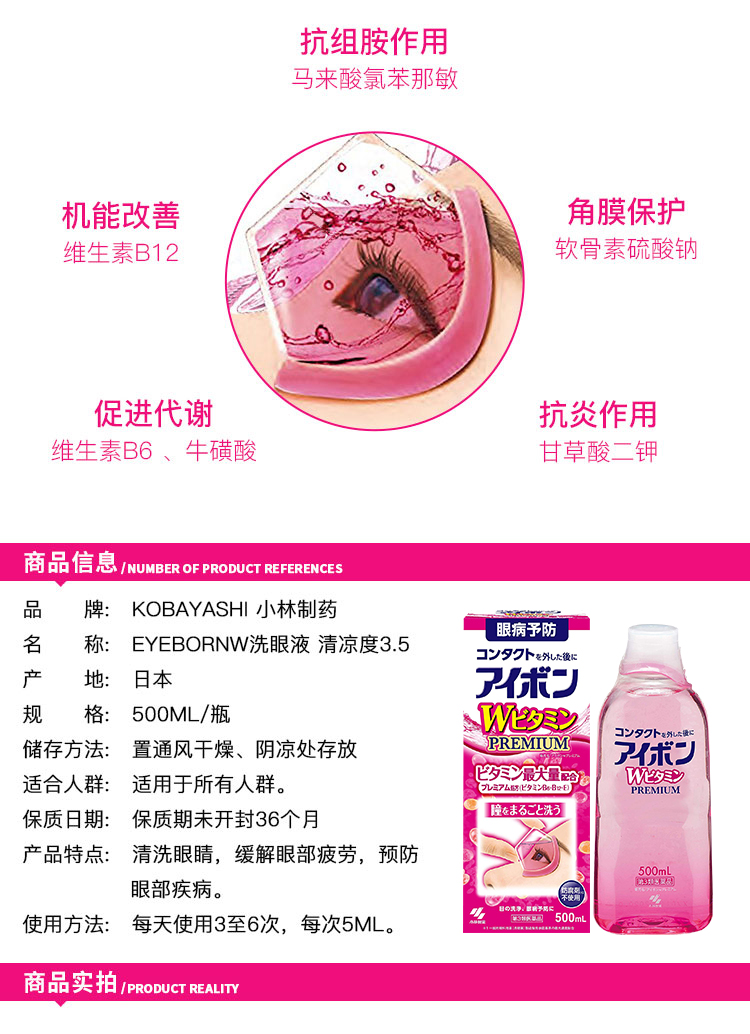 天猫国际进口直营,¥129元 618狂欢价,-32.25元 下单立减,-8元优惠券,=88.75元 到手价,规格为500ml*2瓶,日本小林制药洗眼液,原装进口,景甜同款,香港直邮,能有效环节眼镜干涩疲劳,清除红血丝,含双倍维生素B12和B6,多效保护眼角膜。叠加跨店每满200-30元满减