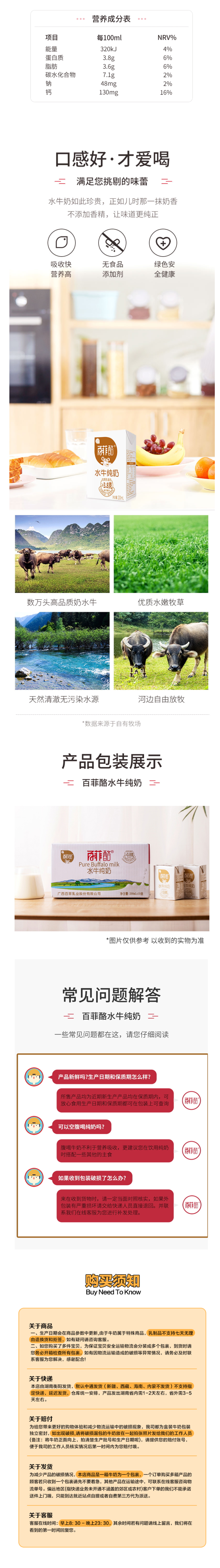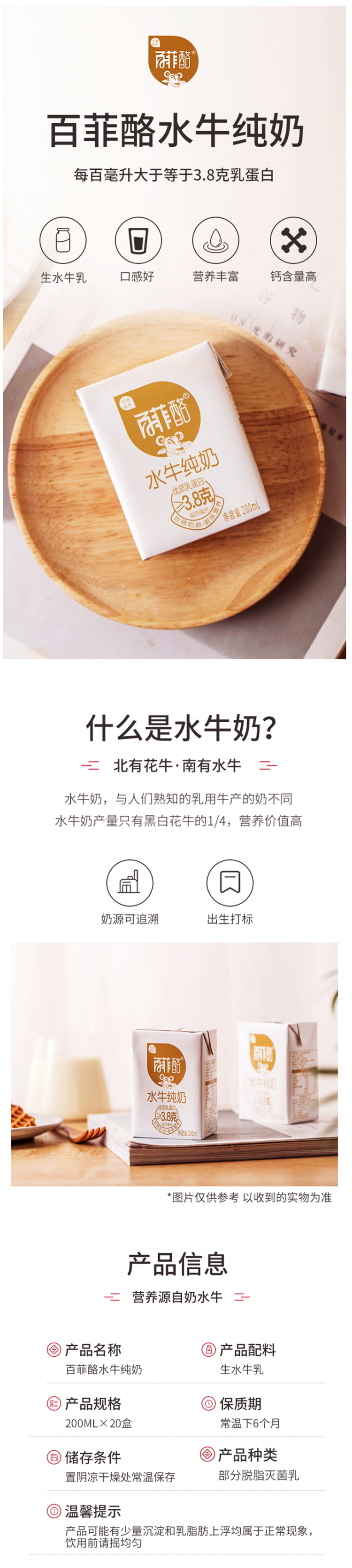 百菲酪水牛奶,来自著名的“中国奶水牛之乡”——广西灵山。100%的纯牛乳,没有任何添加剂,奶味醇厚,无腥味,比一般牛奶略浓稠,微带甜味,口感丝滑,有点像冰淇淋或者奶酪的口味,加热后牛奶表面会结出一层厚厚的奶皮,用来做甜品更棒,适合全年龄段食用。