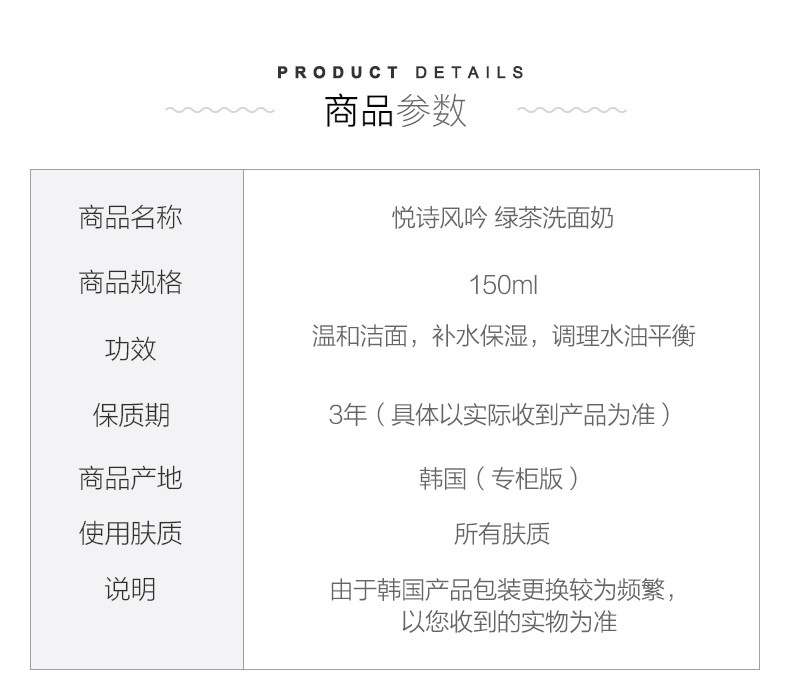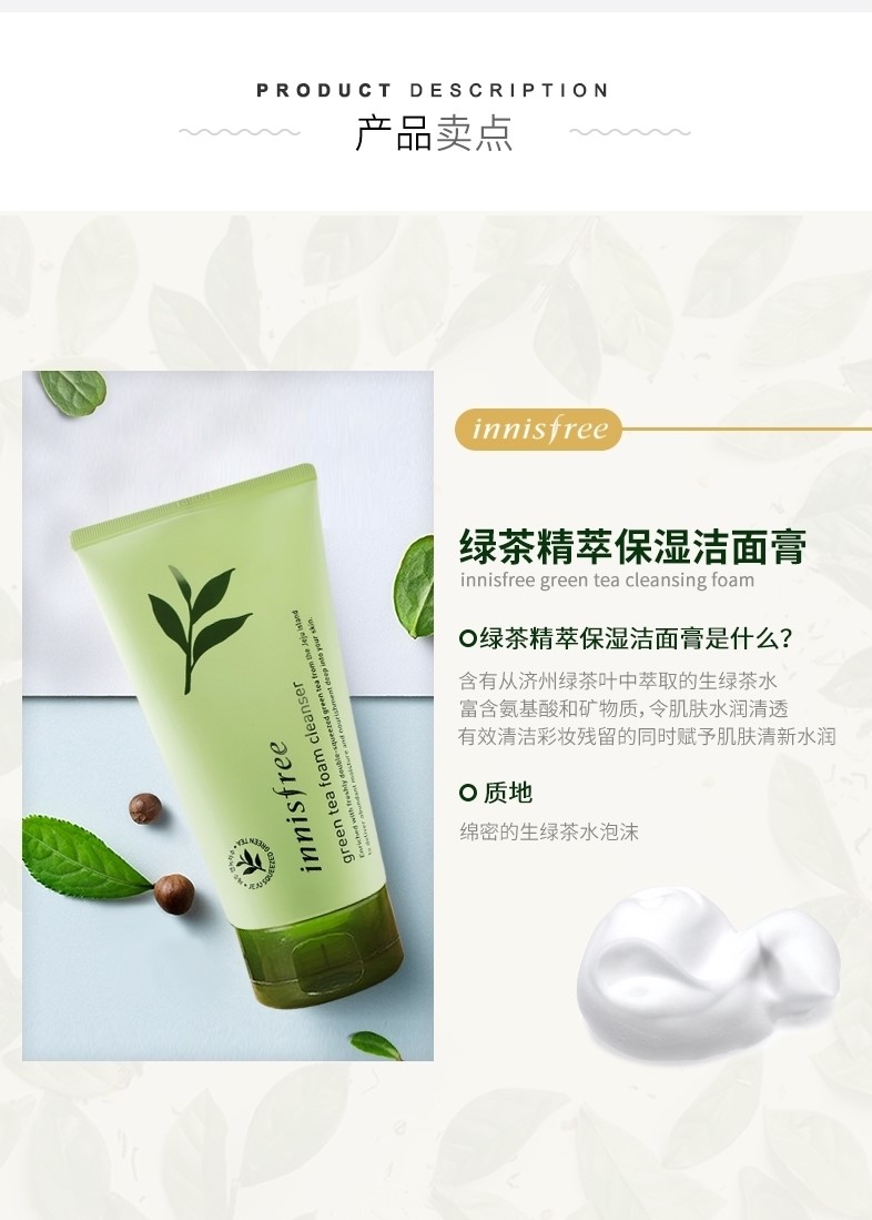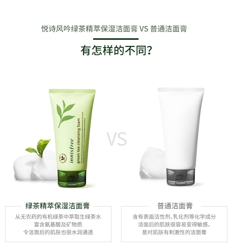 这款悦诗风吟 绿茶精萃保湿洁面膏,是一款保湿型的洁面乳,富含济州岛绿茶提取精华,88%自然成分,使用时泡沫绵密、清爽舒服,拥有洁面、保湿的功效,适合清洁力有要求的中性及混合性肤质,使用后的清爽强。