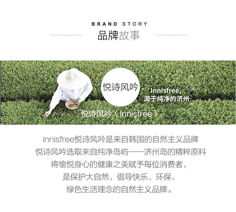 innisfree 悦诗风吟是韩国化妆品品牌,是由韩国第一化妆品集团Amore Pacific爱茉莉太平洋集团研制的自然主义化妆品品牌。