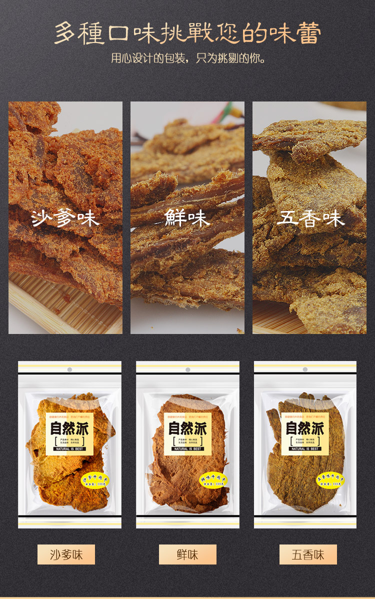 天猫自然派旗舰店39.9元,下单立减5元,可领10元优惠券,实付24.9元到手,有沙嗲、五香、鲜味3种口味,30年传承经典粤式风味,精选优质黄牛后腿肉,肌腱发达脂肪少,人工去除筋膜,用心切片,历经19道工艺,低温慢火烘烤,均匀受热入味,严控湿度,吃起来嚼劲十足,肉质松软不柴。