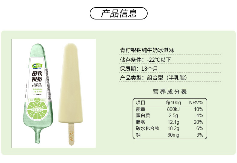 这款田牧 金钻/银钻 纯牛奶冰淇淋,不加水,无色素无防腐剂,口感细腻爽滑,口味浓醇鲜香,有气势纯正的奶香和入口的绵滑,一种沁透心底的曼妙滋味,在舌尖慢慢绽放。金钻冰淇淋,纯正比利时巧克力脆壳,浓醇脆滑,诱惑难挡。纯鲜奶冰淇淋内料,入口绵滑,口口醇正。