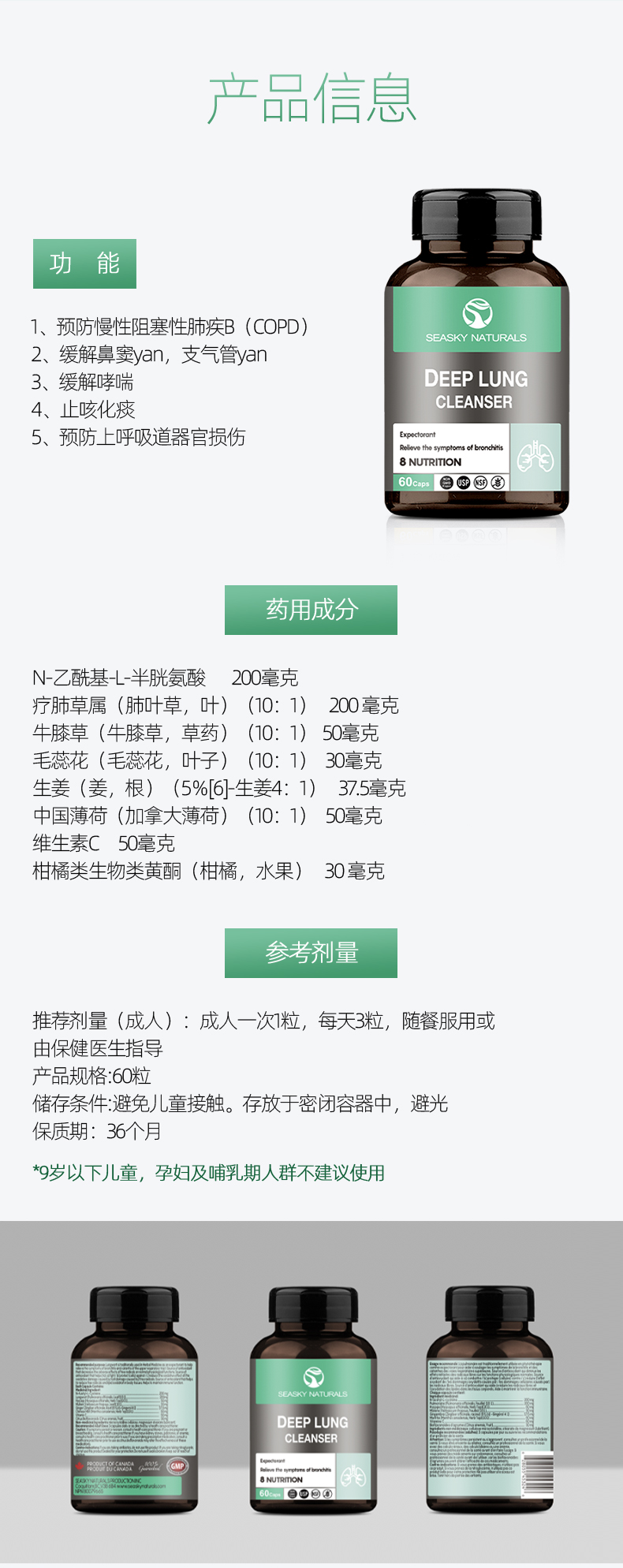 规格:60粒,成人每次1粒,每日3次,治愈受损组织,让肺部充满活力!孕妇儿童不建议使用。