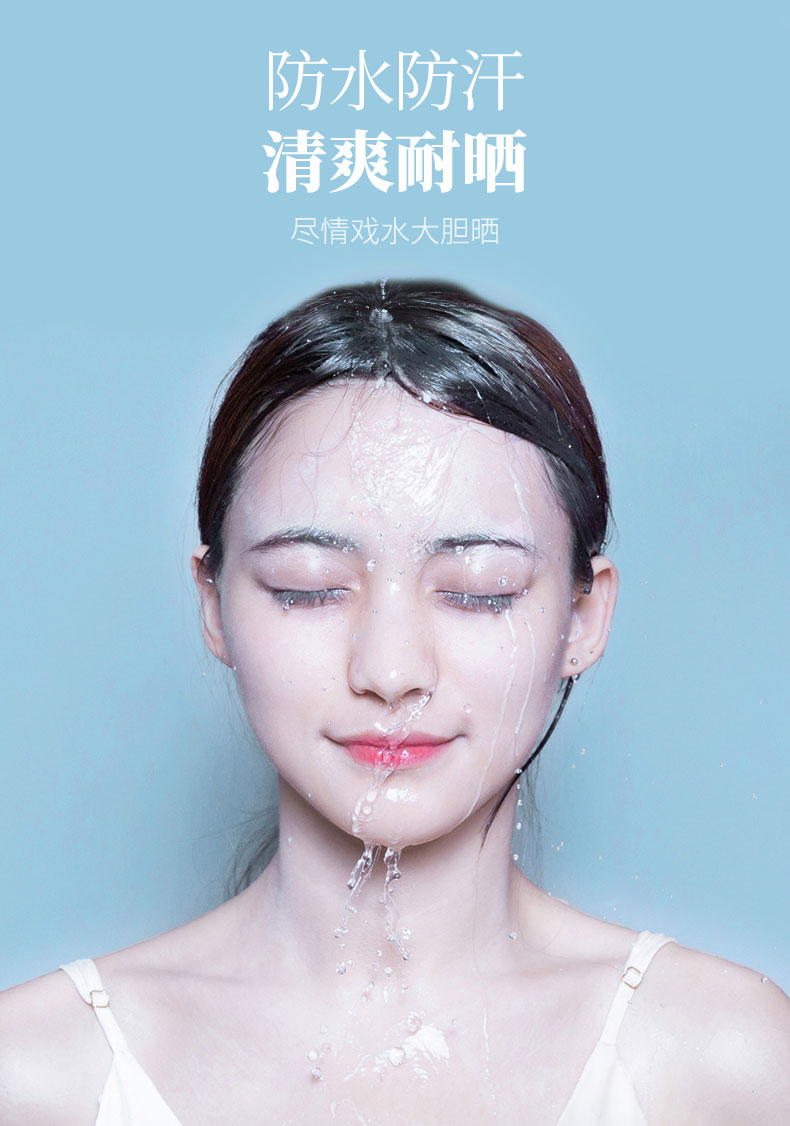 拥有高防晒指数SPF50+PA+++,是目前世界最高防晒指数,防晒时间长达12小时,有着如羽毛般轻盈的质地,丝毫没有浮白迹象,360度自由喷湿的设计,脸部及全身均可无死角方便使用。蕴含有多种自然成分,防晒之余也具备补水、保湿、滋润、修护、效果,皮肤表面快速成膜,防水防汗清爽不油腻,隐形不脱妆,长达一整天。