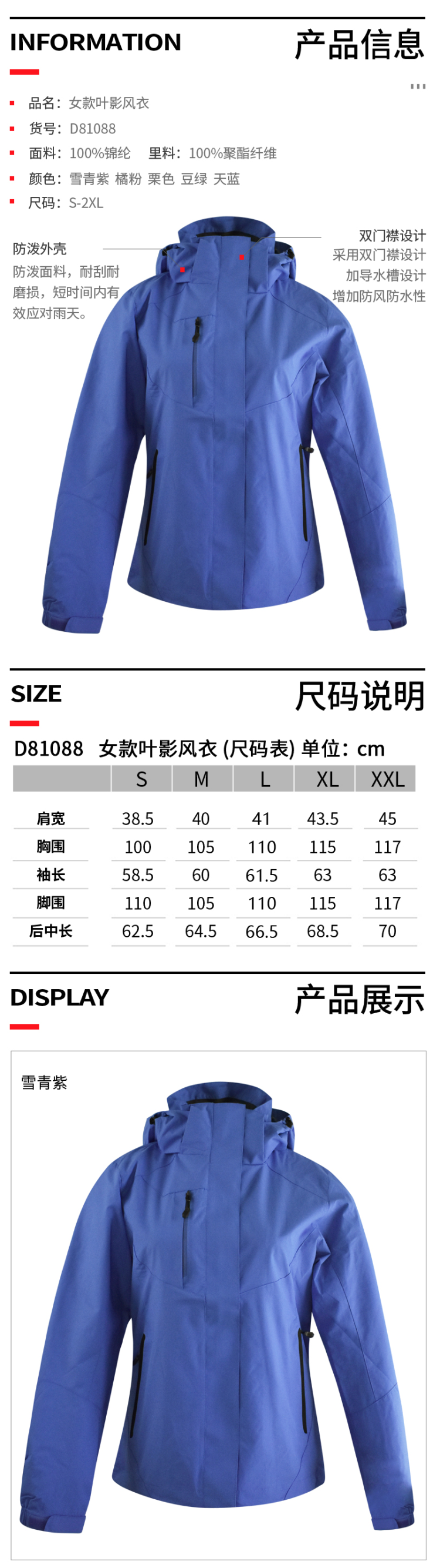 这款君羽 叶影 女单层冲锋衣,是2019年的款,有很好的防风防水效果,可以当做雨衣穿。采用高密织工艺的锦纶面料,拥有防水防风的功能防护;丰富的纤维透气微孔能排除衣内的湿气,保持身体清爽干燥,无黏腻感。
