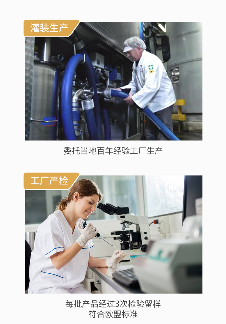 德亚牛奶由德国知名奶产品厂商Hochwald 好沃德代工生产,商品拥有国家颁发的“出入境检验检疫卫生证书”和“中国人民共和国进口货物报关单”。