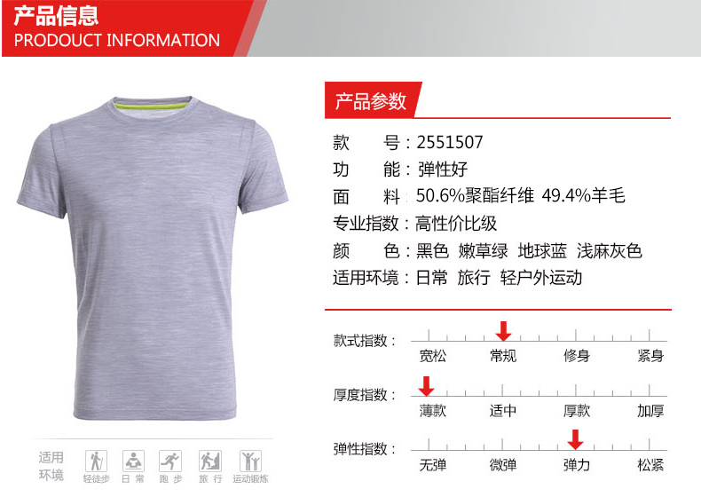 地球科学家的这款T恤采用50.6%聚酯+49.4%羊毛混纺,手感上摸起来非常柔软,有很好的吸湿透气效果,能吸收大量水气并快速挥发,保持体表恒温舒爽;同时由于羊毛的主要成分是质蛋白,可以抑制细菌滋生,抑菌除臭,不会出现汗酸味,无论是日常或者运动都能穿。