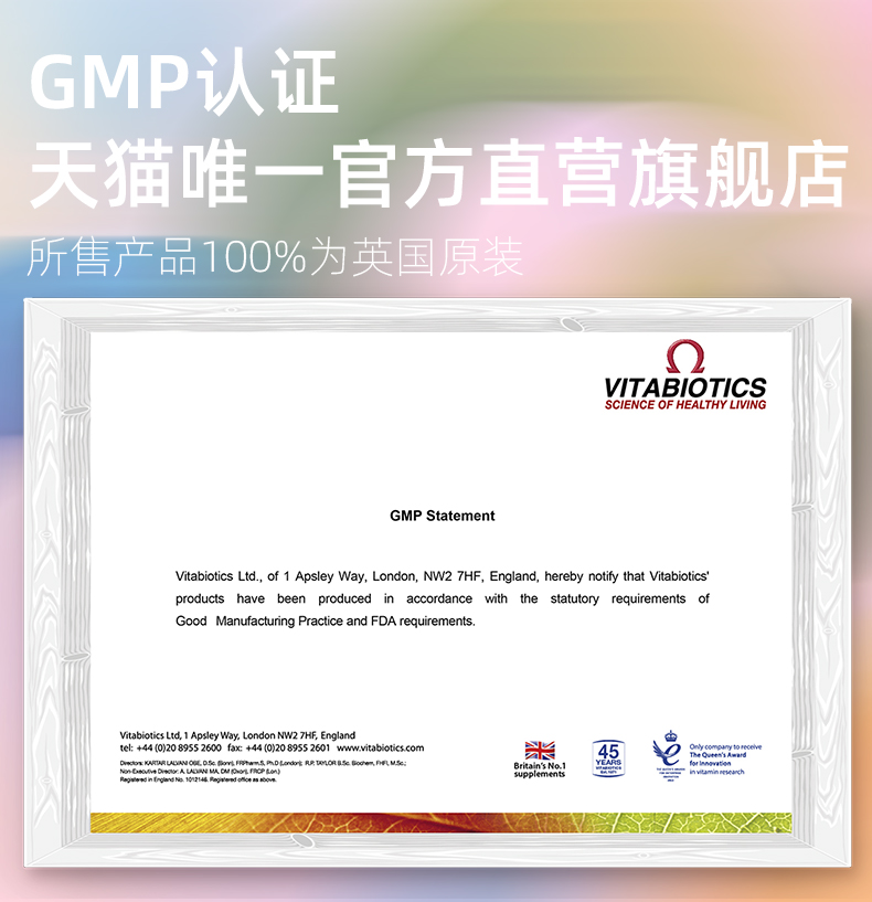 维百莱Vitabiotics是英国保健品品牌,是全英第二大的营养品供应商,成立于1971年,是一家自主研发、生产、销售于一体的营养保健公司。