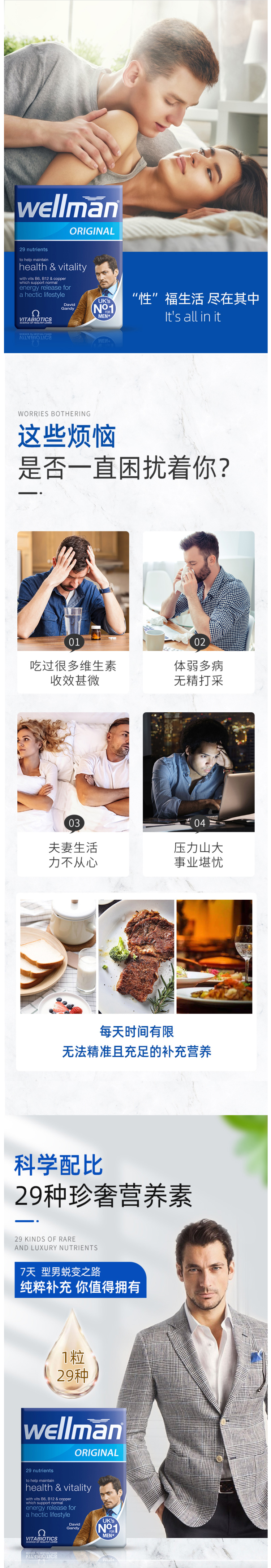 天猫Vitabiotics保健品海外旗舰店,第一款/18岁以上男性 109元、第二款/50岁以上男性 129元,可领65元优惠券,最低实付44元到手,第二件21元,拍2件65元,更加划算,规格是30片。创新29种多维 深度解决男性亚健康问题。
