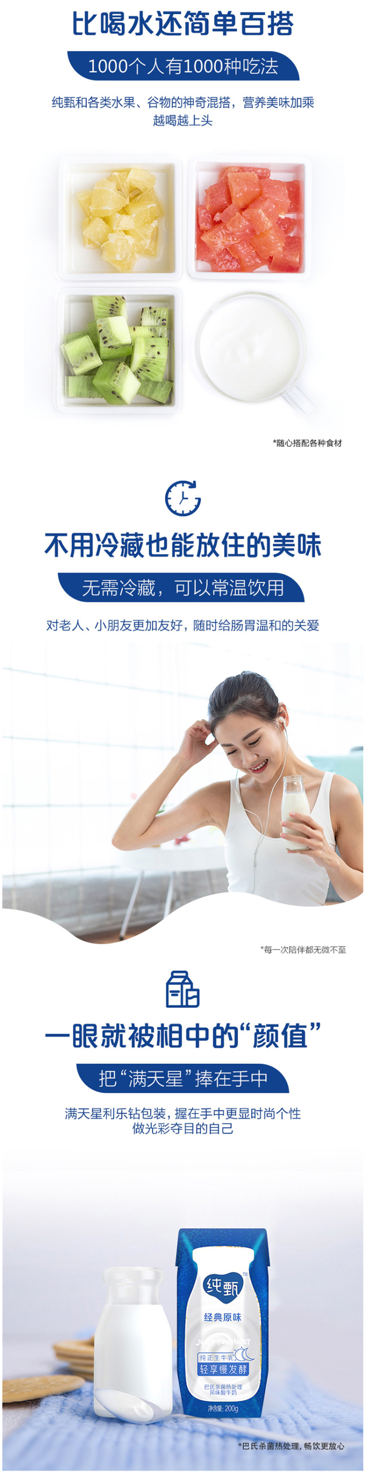 这款蒙牛 纯甄 常温酸奶,精选上等奶源,口感纯正,原汁原味,不添加香精、防腐剂、色素,天然美味,营养健康。