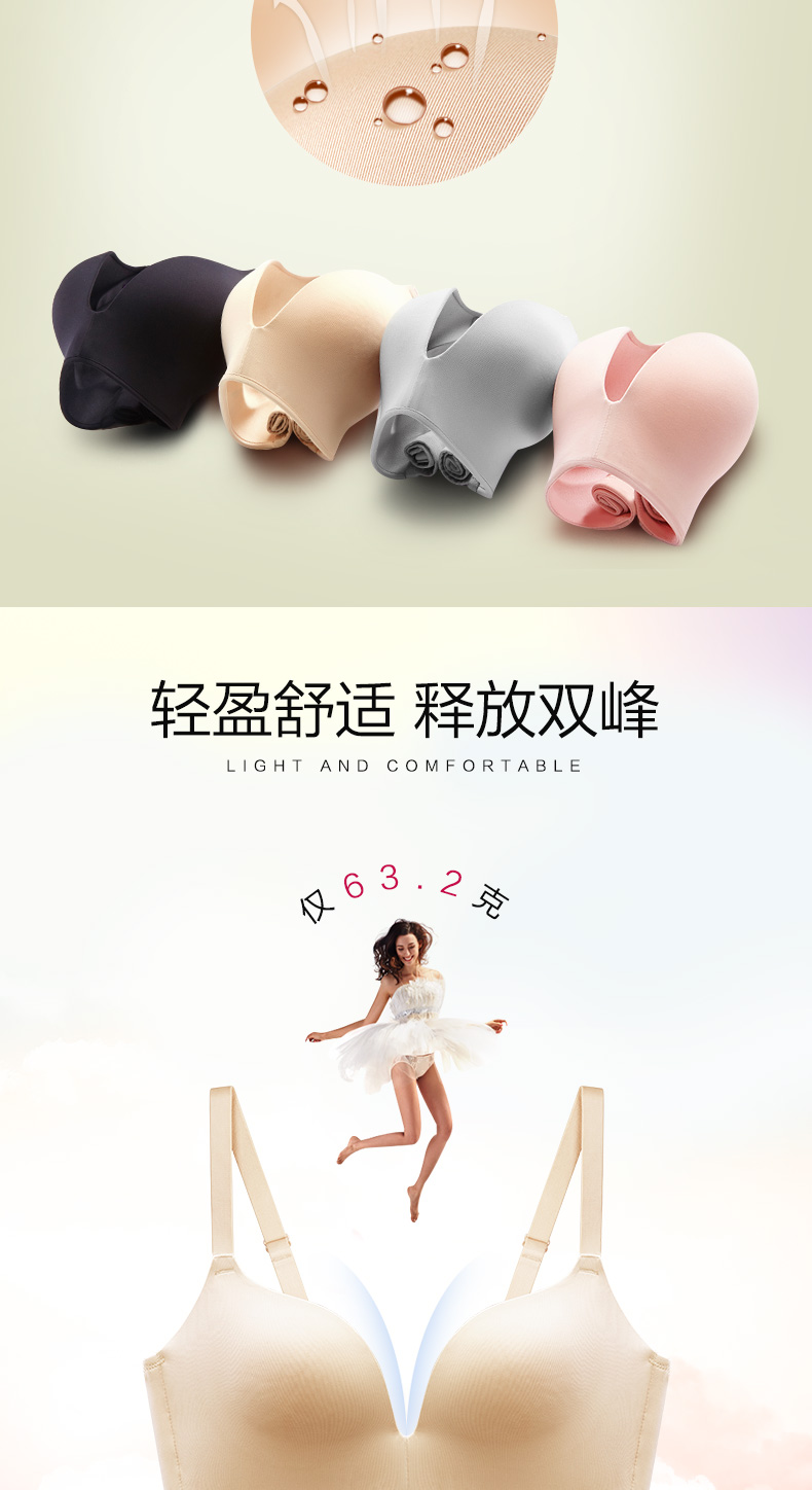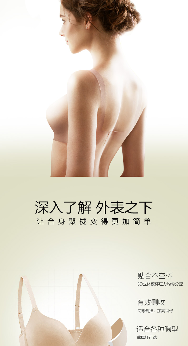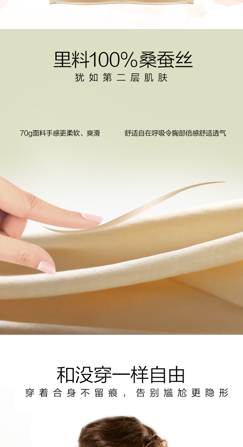 这款金三塔 真丝无钢圈无痕聚拢内衣,里料100%桑蚕丝,犹如第二层肌肤,70g面料手感更柔软,爽滑,舒适自在;3D立体模杯,贴合不空杯,夹弯侧推,加高耳仔,有效侧收;4排3扣,穿着稳定。