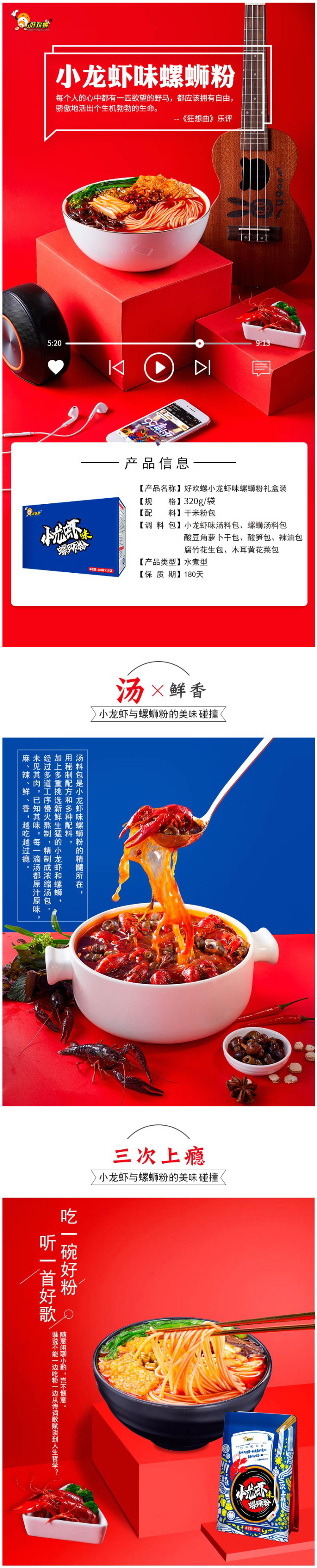 辣、爽、鲜、酸、烫、香且臭的好欢螺螺蛳粉+浓郁的麻辣小龙虾味,使麻辣鲜香的口感再次升级。