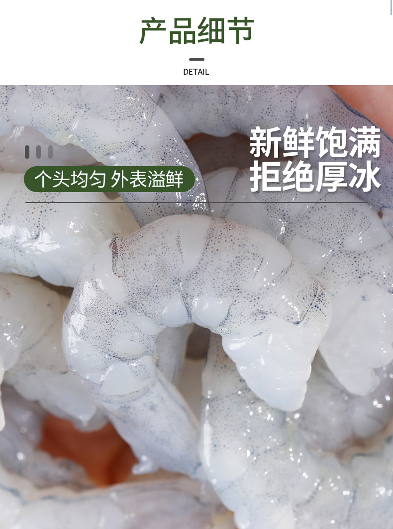 精选优质虾源,手工剥壳去虾线,Q弹爽口,个大肉多,肉质紧致饱满,口感爽滑弹牙!无污染养殖,自然生长,鲜甜美味领券链接点此