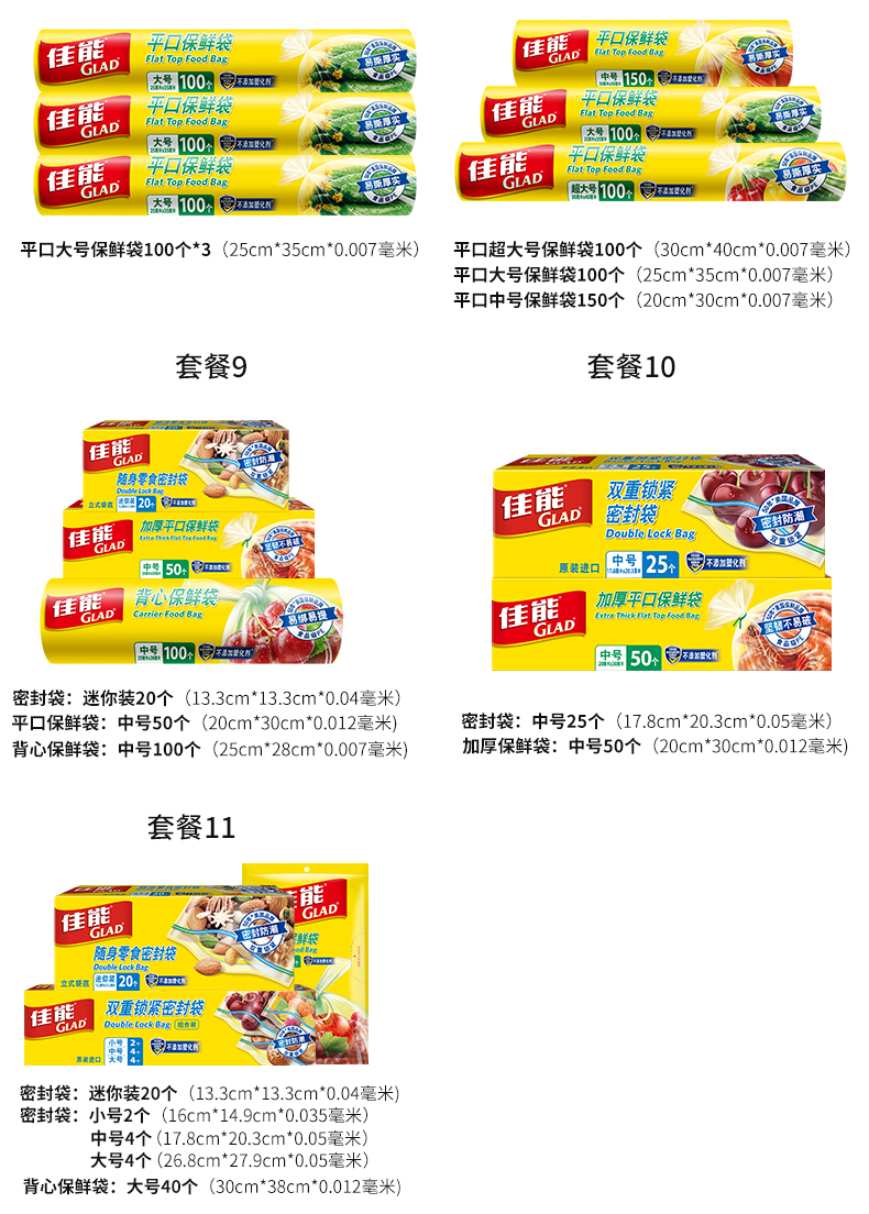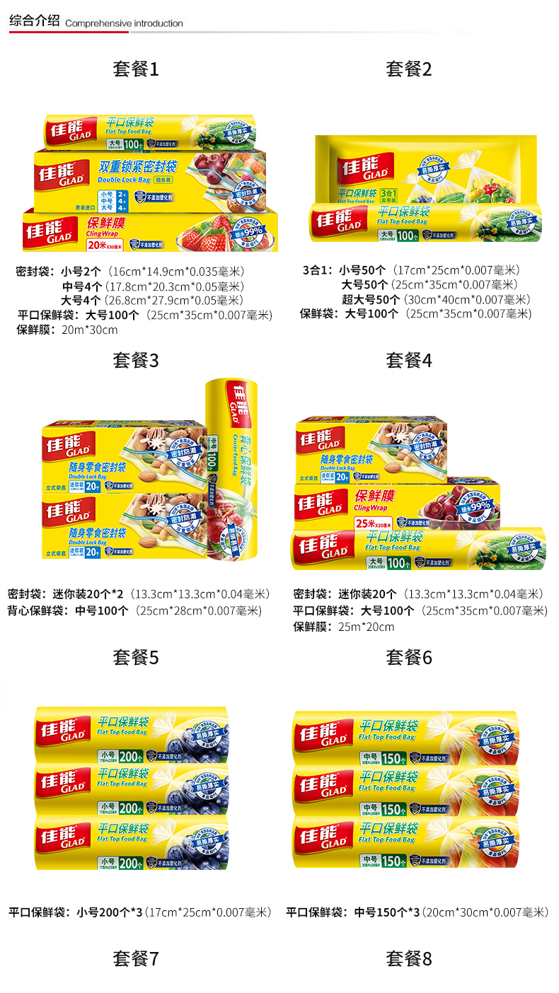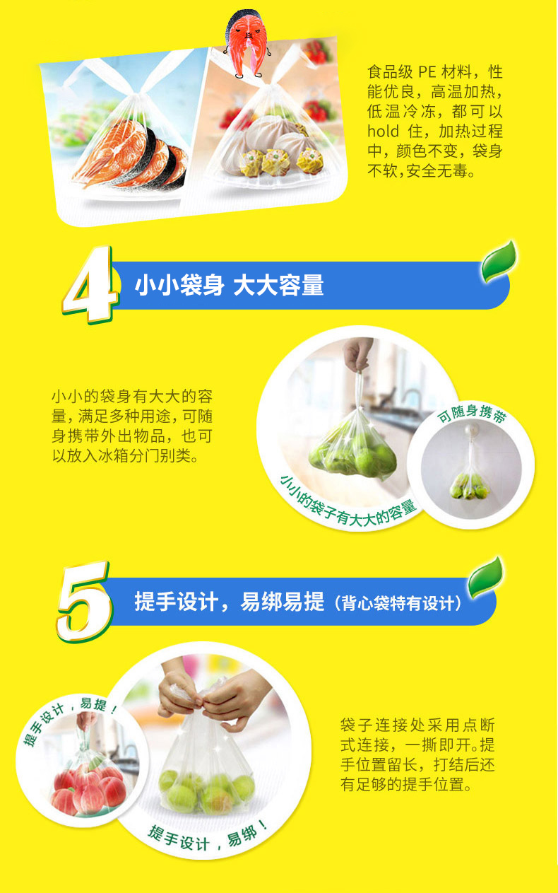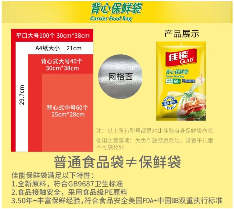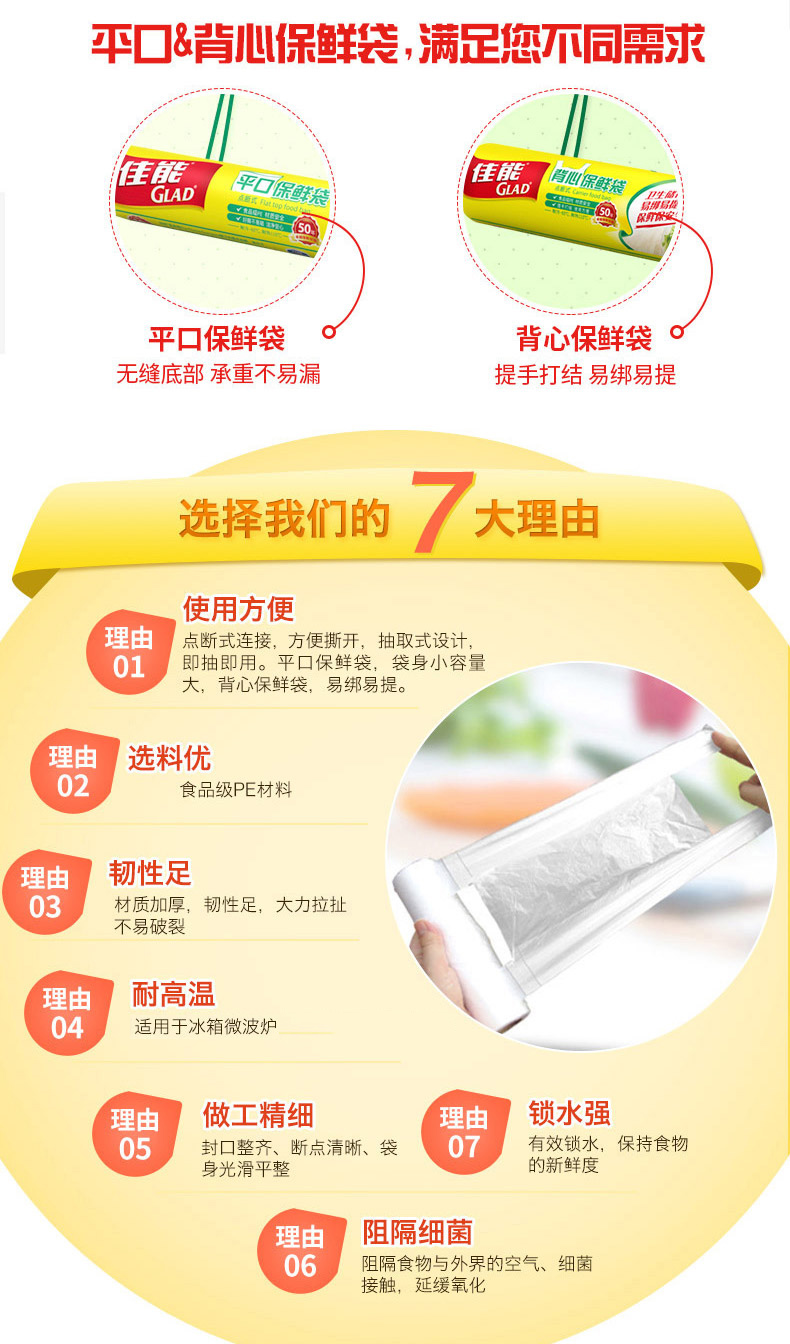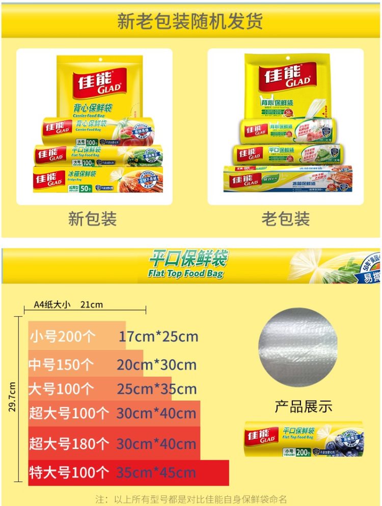 天猫高乐氏旗舰店39.9元,可领20元优惠券,实付19.9元到手,平口保鲜袋小号+中号+大号、保鲜袋+铝箔烤盘、保鲜袋+保鲜膜的各种组合,可以按需选购。选用食品级PE材质制成,加厚设计,韧性足,大力拉扯不易破裂,耐高温,冰箱微波炉都能用。下方图片中有关于保鲜袋大小、款式的差别。领券链接点此