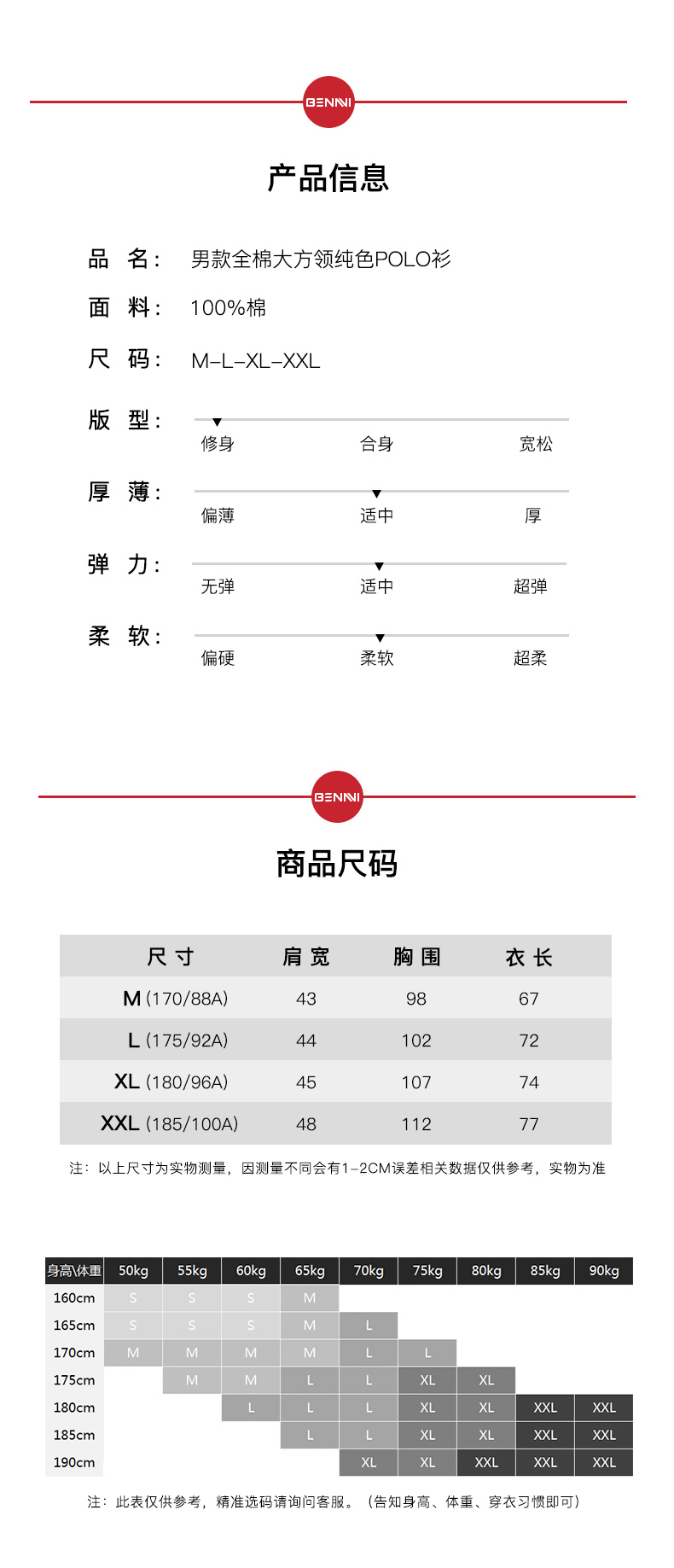 本米男士polo衫,面料为100%美国皮马棉,珠地网眼结构,比普通针织布更透气、透湿、干爽及更耐洗,夏天穿舒适又好打理。