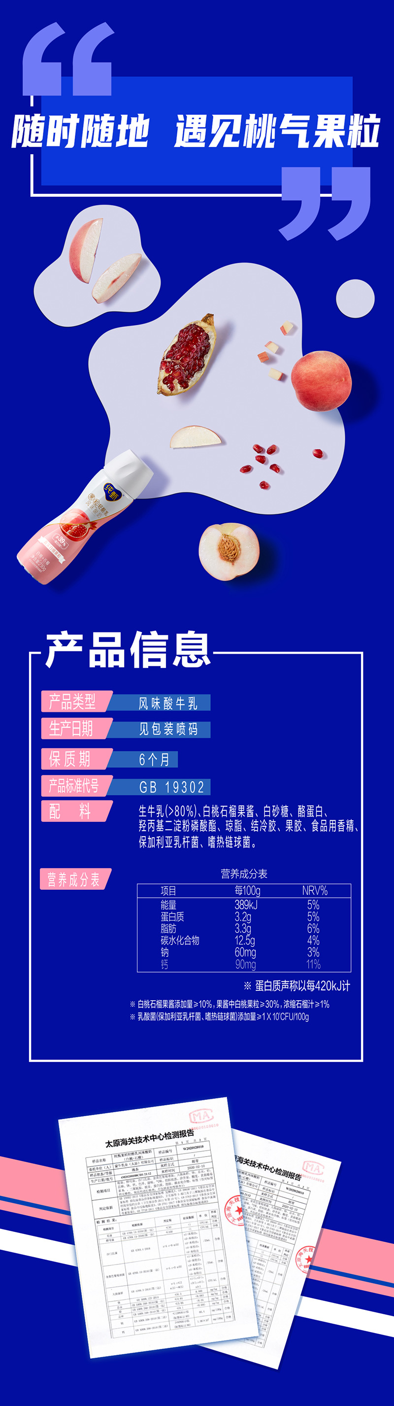这款蒙牛 纯甄 轻酪乳白桃石榴味酸奶,纯正牛乳+丹麦乳酸菌发酵,在添加白桃果粒+进口石榴汁制成,口感细腻顺滑、果味浓郁,营养也很丰盛,使用巴氏杀菌处理罐装,小蛮腰的包装瓶,也很可爱。