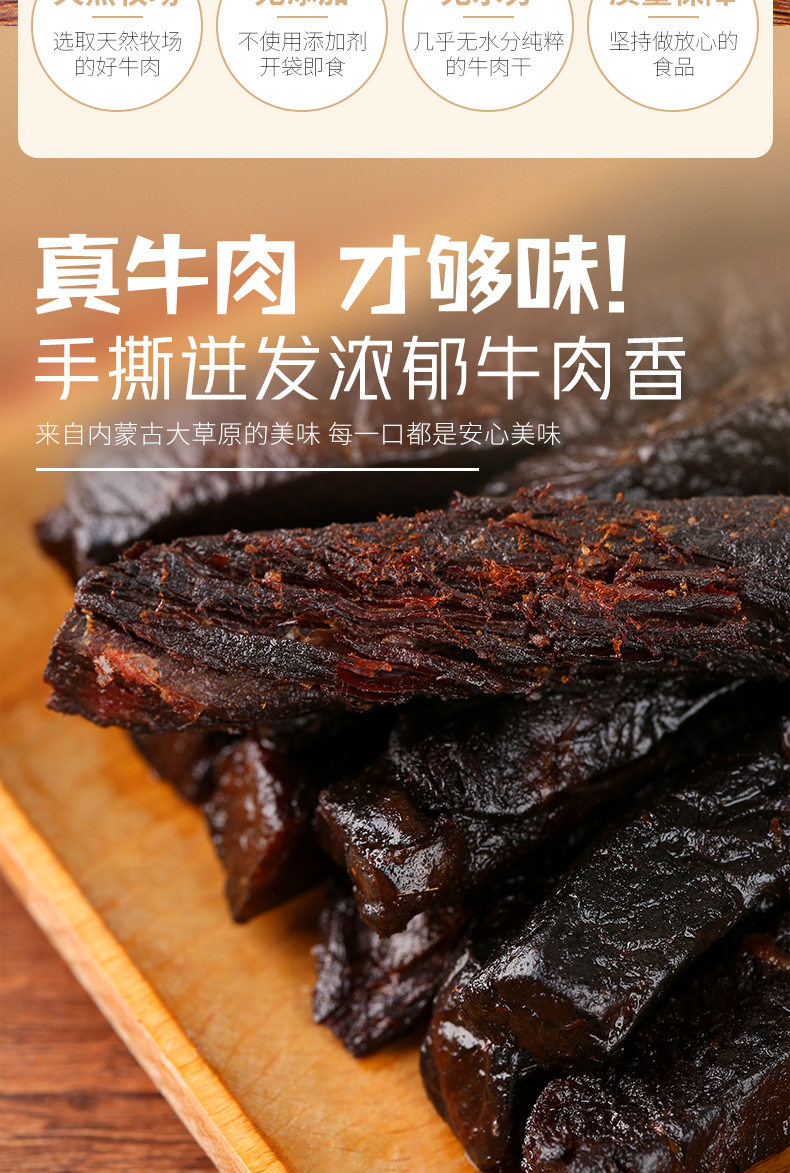 天猫珂迩旗舰店89元,可领60元优惠券,买一送一,实付29元到手一斤,后三款此价,8千评价4.9高分,0添加无防腐!鲜牛肉手工切条,无菌风干,肉质紧实,口感好,有嚼劲,独立包装设计,开袋很方便,吃货们必须囤啊。赠运费险领券链接点此