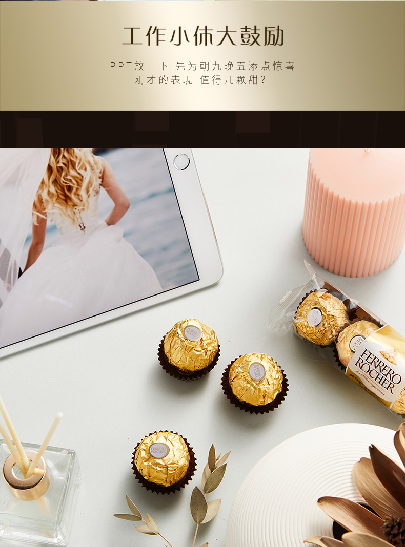 意大利费列罗Rocher是世界著名巧克力品牌,是国人比较热衷的巧克力产品。原创配方、精心制作、雅致包装和开创性的推广活动;新颖的形状 – 圆形却不规则 – 与金箔纸独立包装,让其尽显典雅华贵;独特风味呼之欲出:外层香浓巧克力,内有松脆威化及香滑榛果可可酱和原粒榛果,带来多种口感的享受。