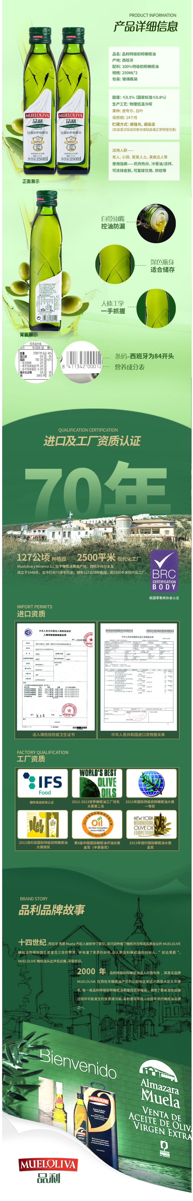 品利经典深色玻璃瓶包装,有效避光,尽可能减少橄榄油中的活性物质橄榄多酚的流失。国际先进的SL EEVER套标技术,完美包裹瓶身,有效遮挡外界光线,防止氧化。新式螺旋盖包装有助于密封,瓶口塑封更加强密封性。