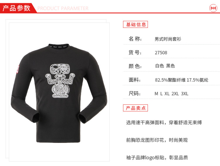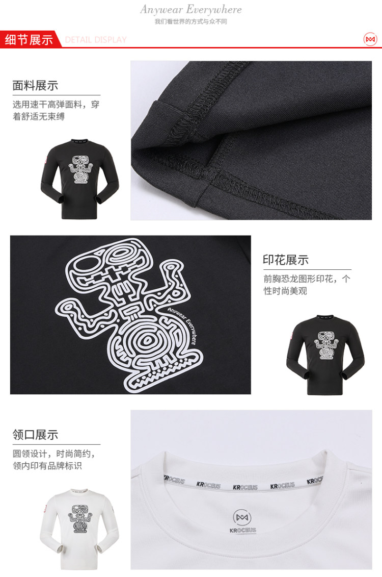 这款地球科学家圆领长袖T恤,采用的是82.5%聚酯纤维+17.5%氨纶纤维的混纺面料,速干透气效果,有很好的弹性,除了日常穿,也非常适合运动时穿着,流汗不粘身,可灵活舒展不紧绷。在版型上男直筒/女修身,胸前有一个大大的恐龙印花,肩膀上有Logo印花。