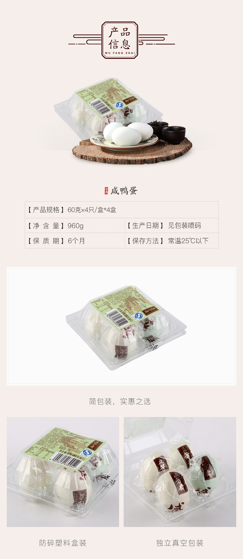 天猫五芳斋官方旗舰店42.9元,下单立减8元,可领5元优惠券,实付29.9元到手,规格是60g*4枚*4盒,这款咸鸭蛋我买过,不过没留下图,个个流油,蛋黄入口沙沙的,很不错,吃着也不咸,配白粥很好。
