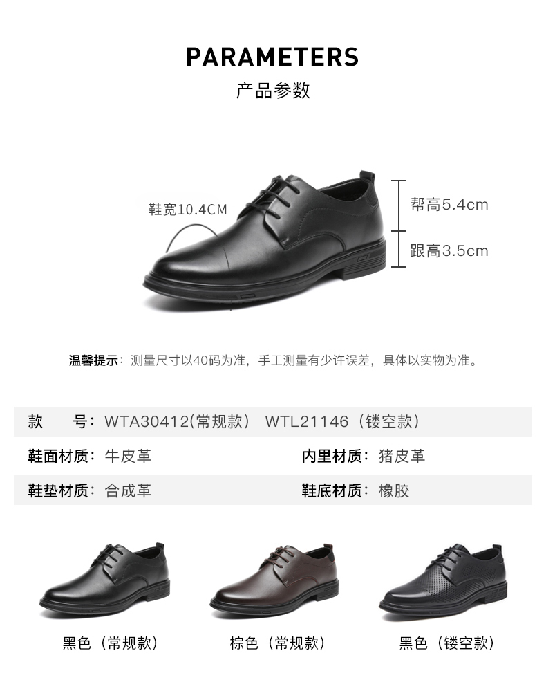 天猫红蜻蜓品牌旗舰店,9月22~24日 天猫潮流周,¥289元 潮流周价,-50元 下单立减,-80元优惠券,=159元 到手价,最经典的正装皮鞋之一,德比鞋,适合商务正装场合穿着,鞋面为精选额优质头层牛皮,舒适耐磨,内里为猪皮材质,柔软贴合,不磨脚,不闷汗,上脚柔软透气。