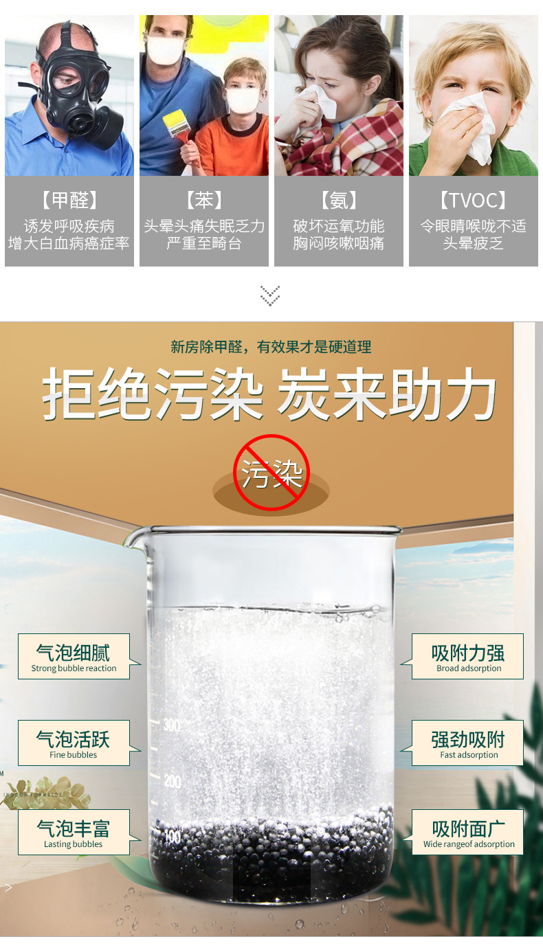 这款属于改性活性炭,对甲醛的吸附作用更好。甲醛的挥发温度是19℃,到29℃会高速挥发,马上天暖和了,还是应该购入一些备着的。去年装修的会迎来二次挥发期,买一些,一个月一换比较好。
