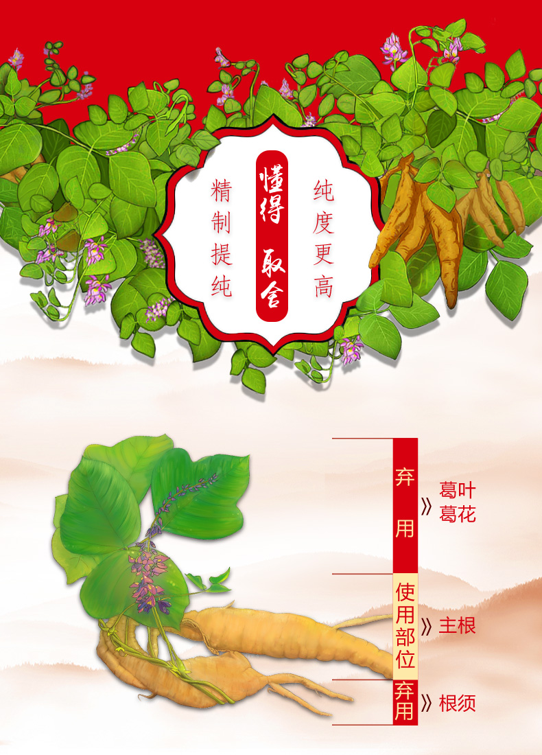 另外,葛根能够促进人体汗液的排放,在饮酒之前服用,可以使酒精随汗液一起排出,解酒解毒保肝。长期服用可以完全排出肝脏内残留毒素,是经常饮酒人士的必备保健品。另外,还有清腻解热,祛痰止咳,降血糖,保护心脑血管健康的功效。最后,葛根还能丰胸效果(这个最重要)。