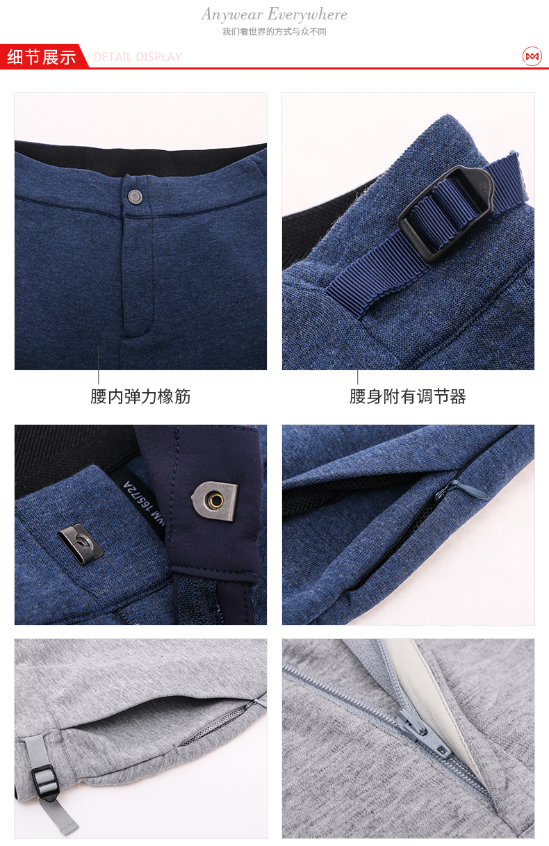 在款式和细节上,标准版型,3D立体剪裁,符合人体工程学设计,上身活动自如。前门襟使用日本YKK拉链,腰内置弹力橡筋,外两侧设有调节扣,无需额外使用腰带,穿脱方便。