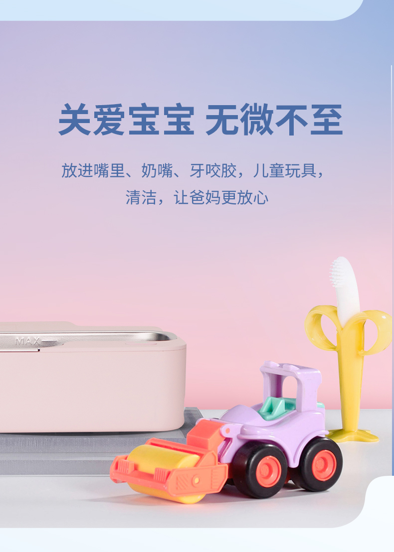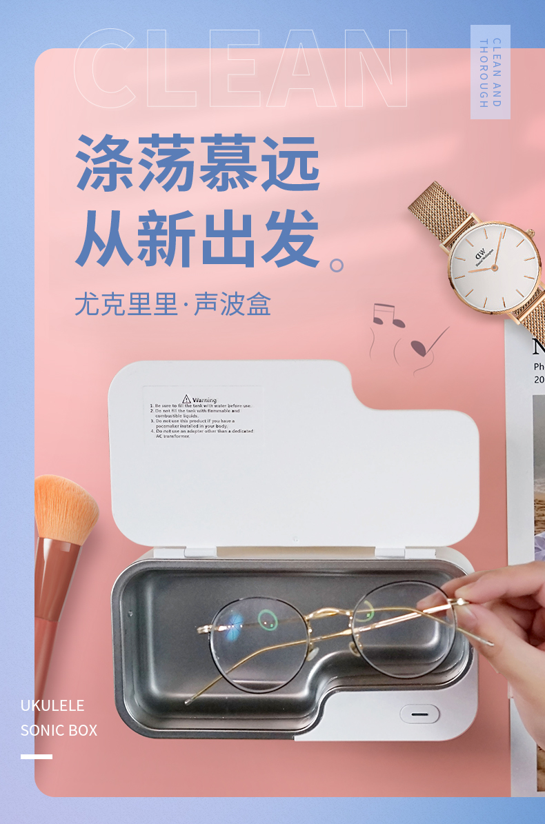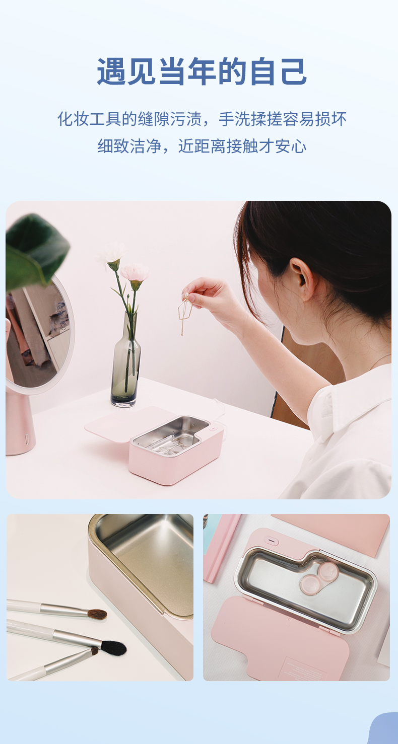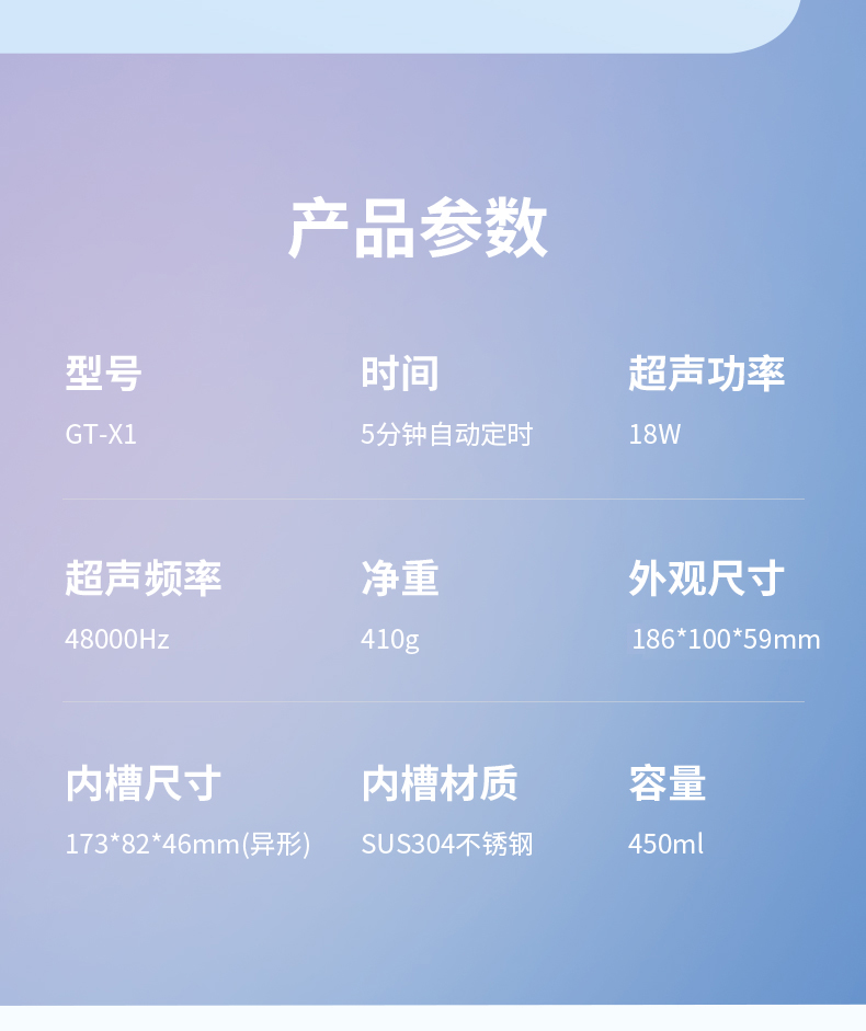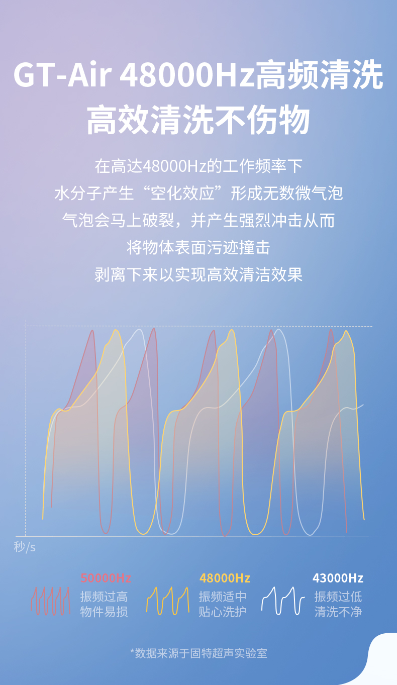 48kHz波频 ,GT-AIR声波技术,只清洗不伤物。多色可选,各种小物件都可以清洗,特别是隐形眼镜,清洗后佩戴感如新。