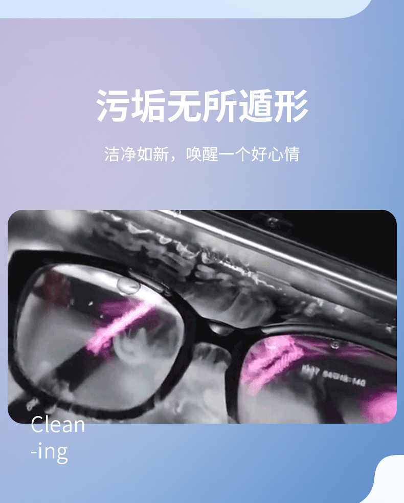 下单额外赠清洗液、置物架和眼镜布。48kHz波频 GT-AIR声波技术 只清洗不伤物。