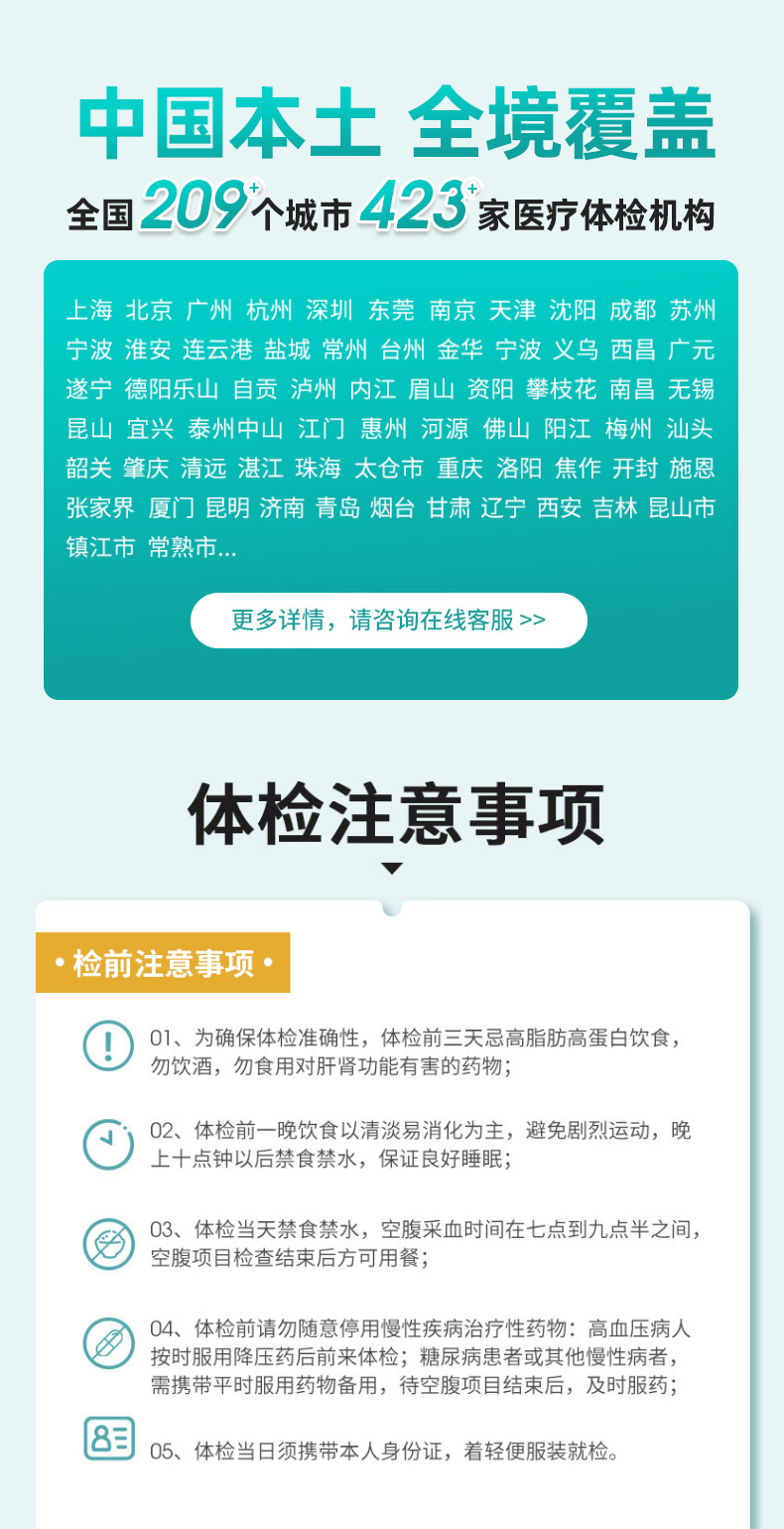 注意:因城市不同,部分体检中心也不同,可能有的城市体检中心的设备很好很新,有的就很旧很差,具体的可以咨询客服。