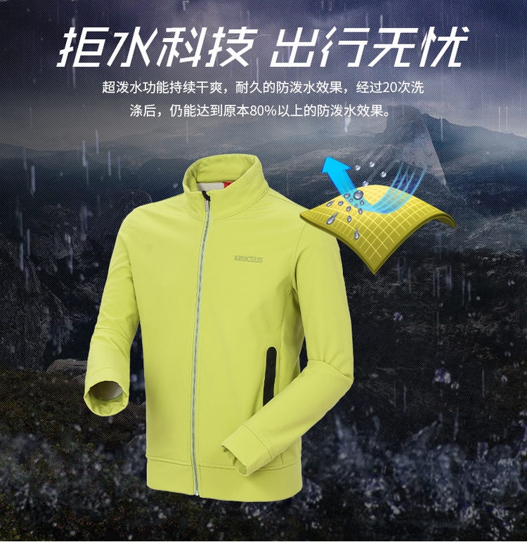 这款软壳的另一个特点就是防水,软壳都防风,但防水不行,这也是软壳与冲锋衣的差距。大多数软壳,都是靠防水涂层防泼水,衣服洗过后防水效果就变得很差了。这款软壳经20次洗涤后,依然能有80%的防泼水效果,是非常难得的。