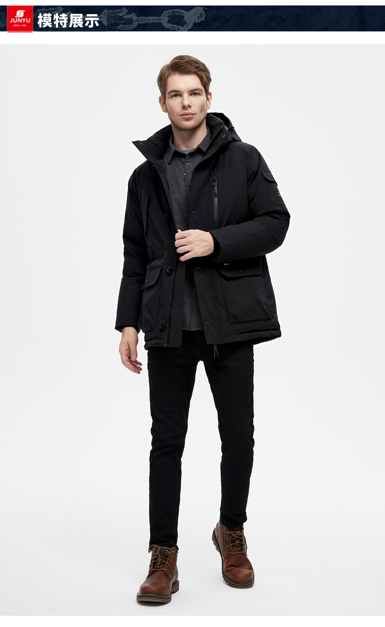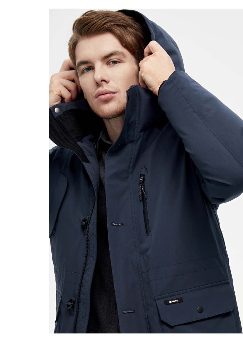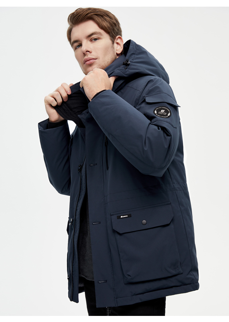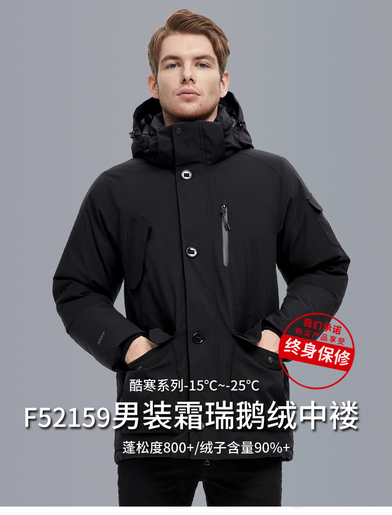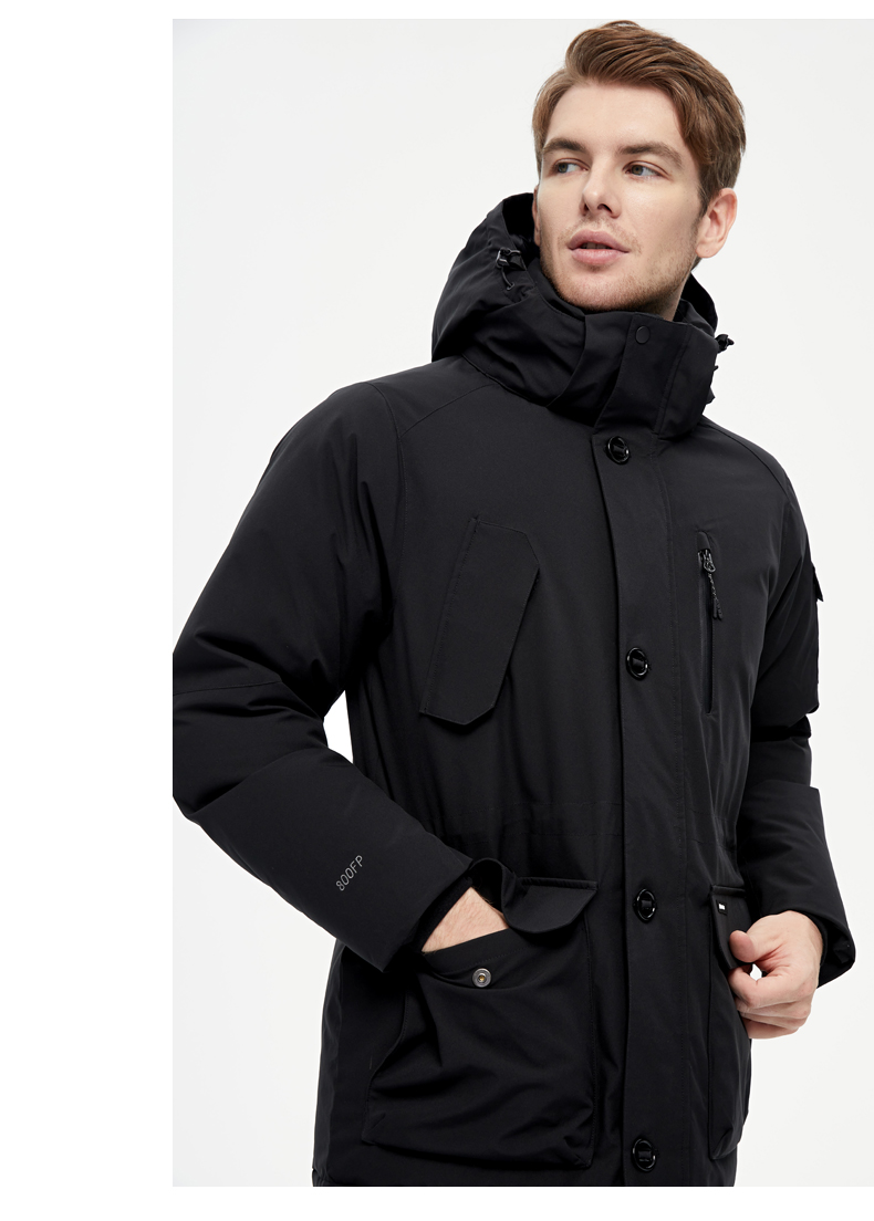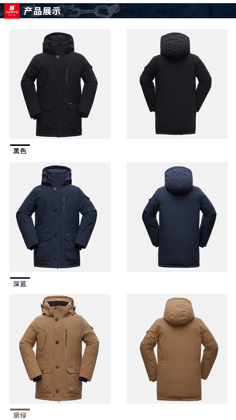 在款式和细节上,中长款,下摆到大腿位置,经典工装风,3D全景调节可拆卸防风雪兜帽,搭配半高领,完全不会漏风,束紧后左右转头也不会影响视线。