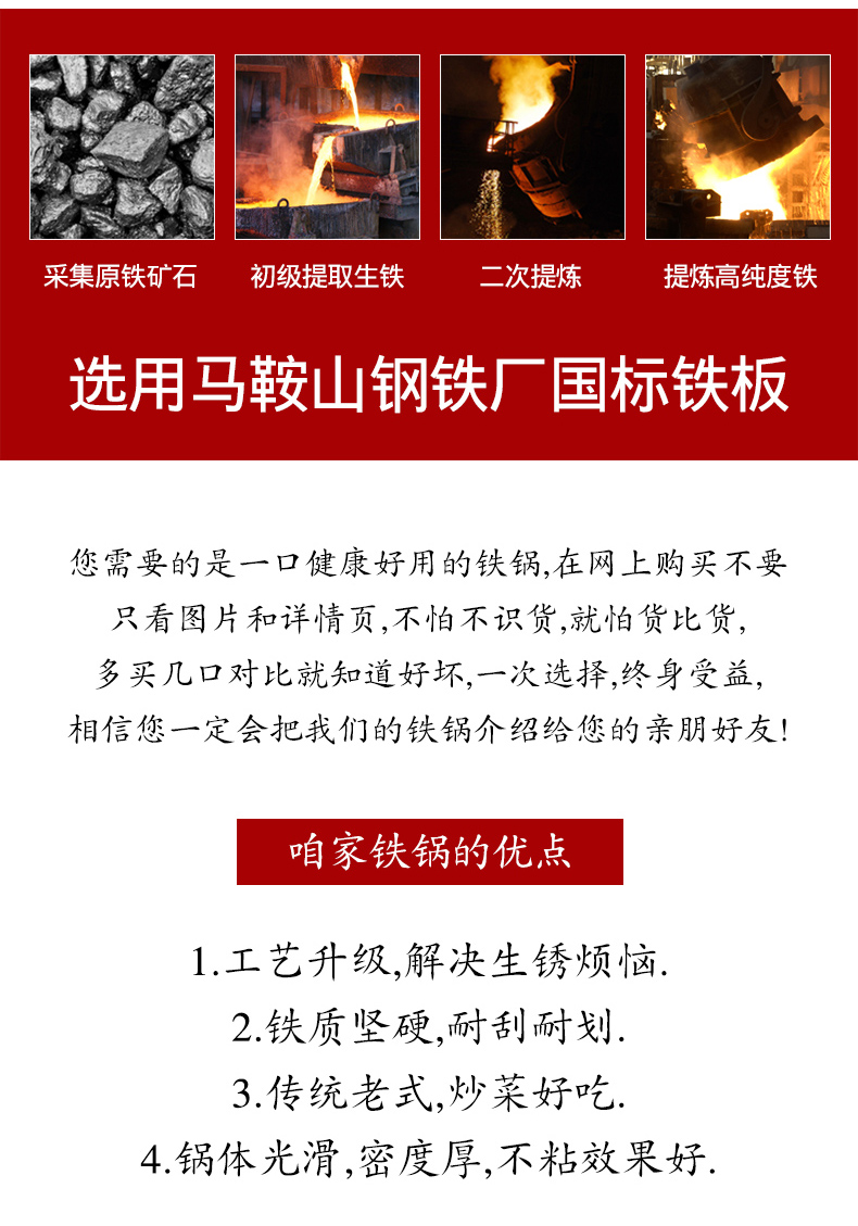 第1款,30cm款此价,无涂层,适合经常炒菜的朋友。高大锤精铁锅,煤气灶专用炒菜锅!纯手工不粘锅,无油烟,易清洁,耐高温不掉漆,超强耐磨,不挑炉灶,结实耐用,居家必备。