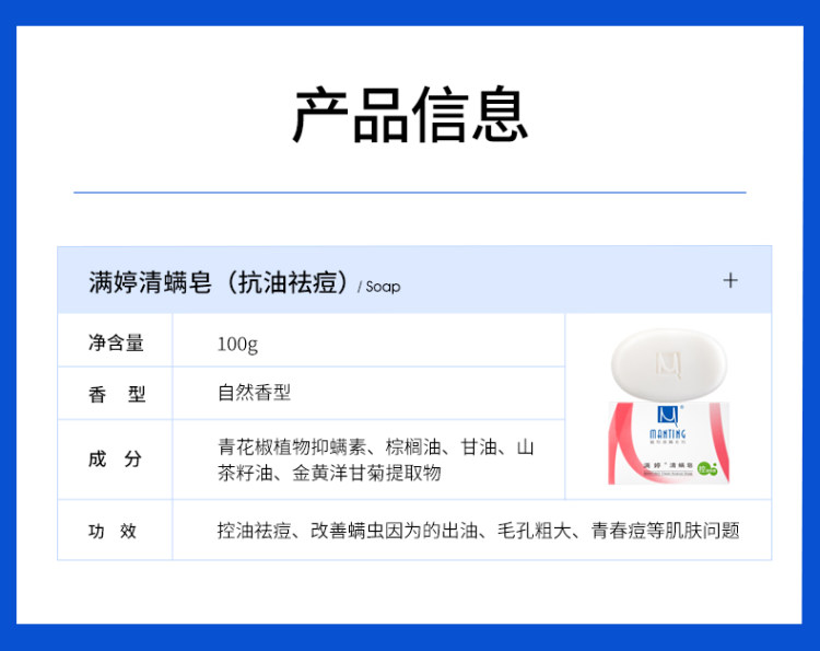 专业除螨18年,满婷清螨皂,控油祛痘,高效除螨;沐浴洗手洁面,就用满婷清螨皂。除螨除菌,双专利技术。领券链接点此