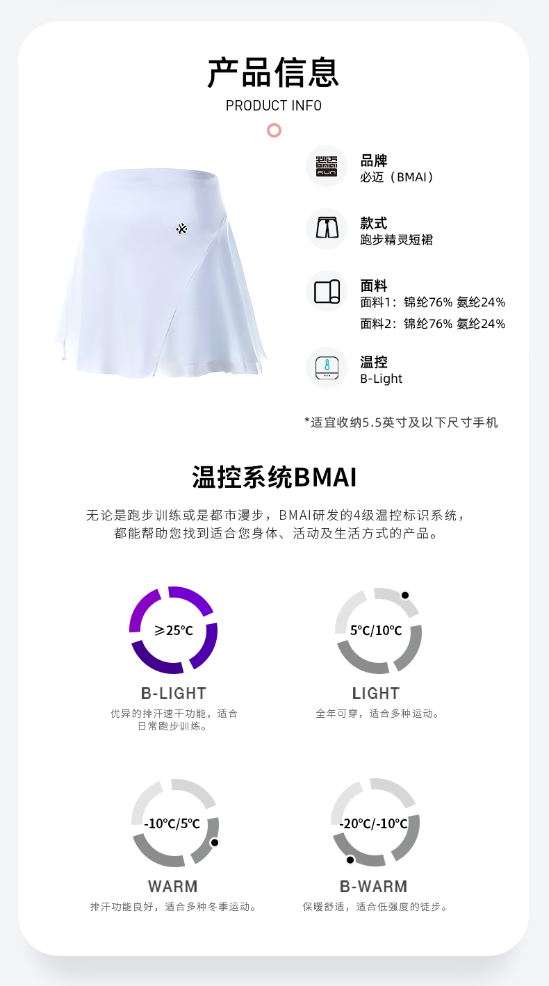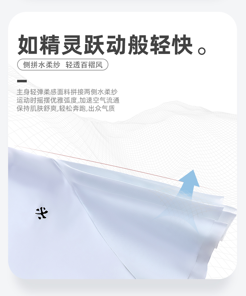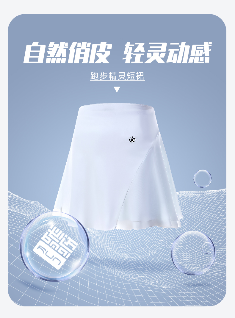 这款必迈女跑步百褶短裙,是一款运动裙,2021的夏季新款,主身使用轻弹柔感面料,两侧拼接水柔纱,经典飘逸百褶风,显得非常清纯干净。