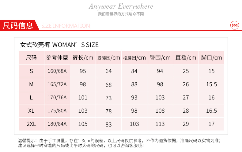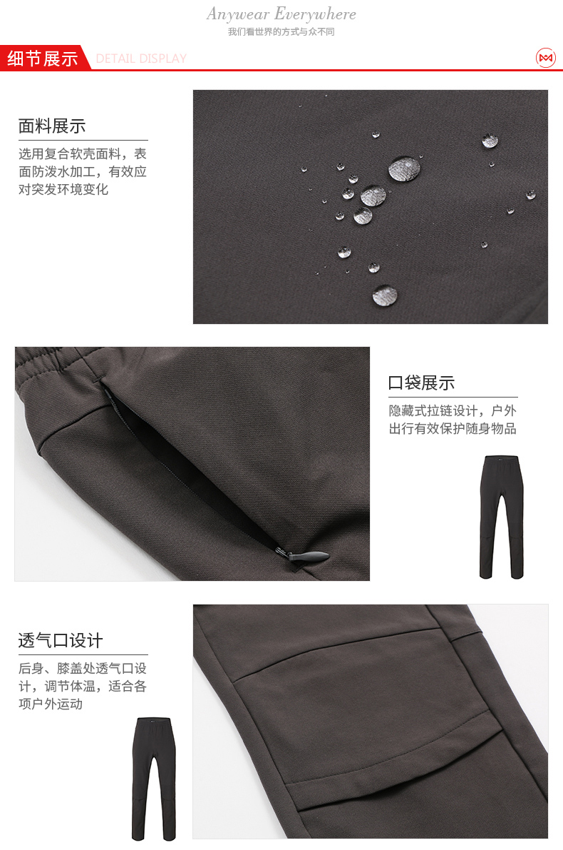 这款地球科学家女软壳冲锋裤,采用92.9%聚酯+7.1%弹性氨纶的复合软壳面料,摸起来的手感柔软不是很硬,外层是梭织的软壳面料,可达97%防风,还经过防泼水处理,里面是自家的Polartec抓绒,能很好的保暖;带弹力,上身不紧不勒不会影响活动性,且抗皱好打理。
