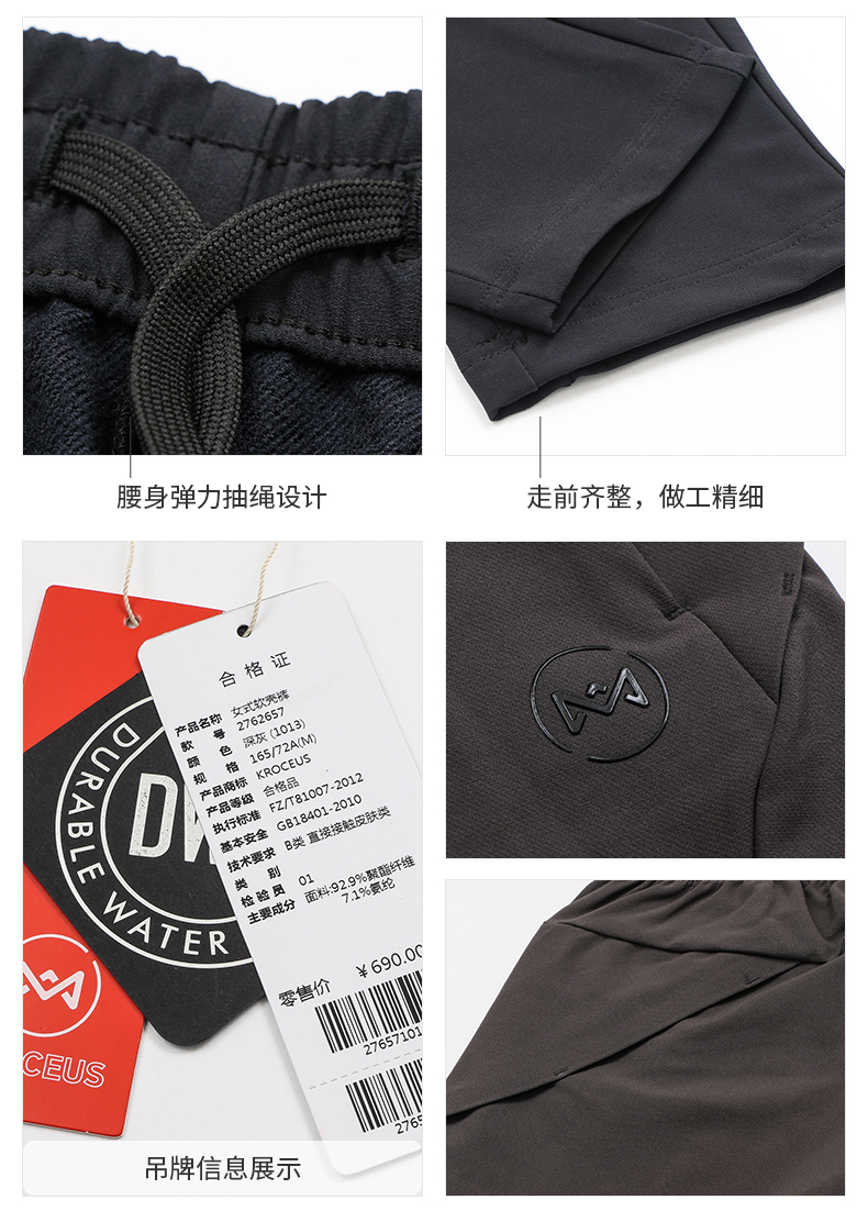 两侧插袋使用隐藏拉链,置物安全,宽型弹力抽绳腰身,能适应大多人的腰型,穿脱也方便。总的来说,款式和功能上都很不错,城市日常和户外都能穿,价格也不贵,性价比超高。