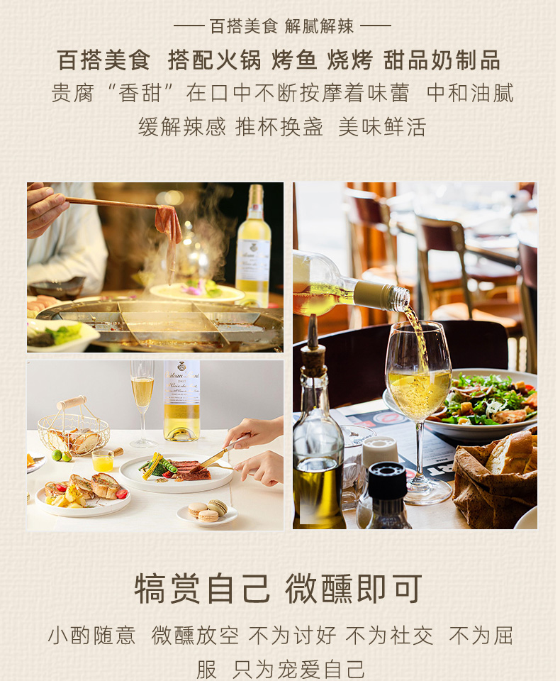 贵腐酒是甜白葡萄酒中最为高贵的一种。呈现出一袭美丽的金黄色酒裙,具有槛椁果冻、蜂蜜及奶油面包香气,口感丰润散发出雅致的烘焙气息。有着“液体黄金”之称,又有“酒中之王,王者之酒的称号”。