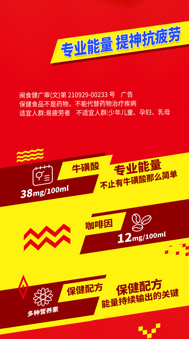 “乐虎”氨基酸维生素功能饮料,主要成份有牛磺酸、肌醇、赖氨酸等人体重要的能量制造原料,以及白砂糖和适当的咖啡因,可维持运动能力,有效抗击运动疲劳。“乐虎”氨基酸维生素功能饮料能起到迅速提神的作用,保持头脑清醒,有效驱除因长时间工作出现的精神困乏状态。